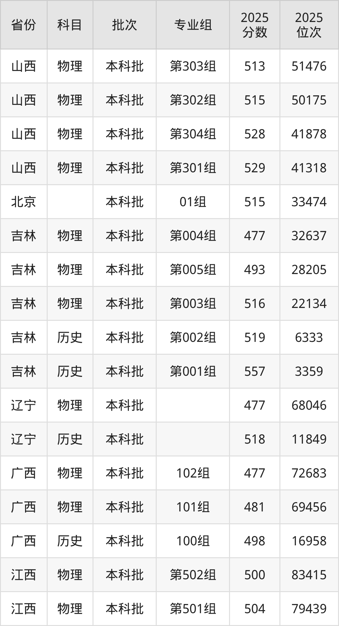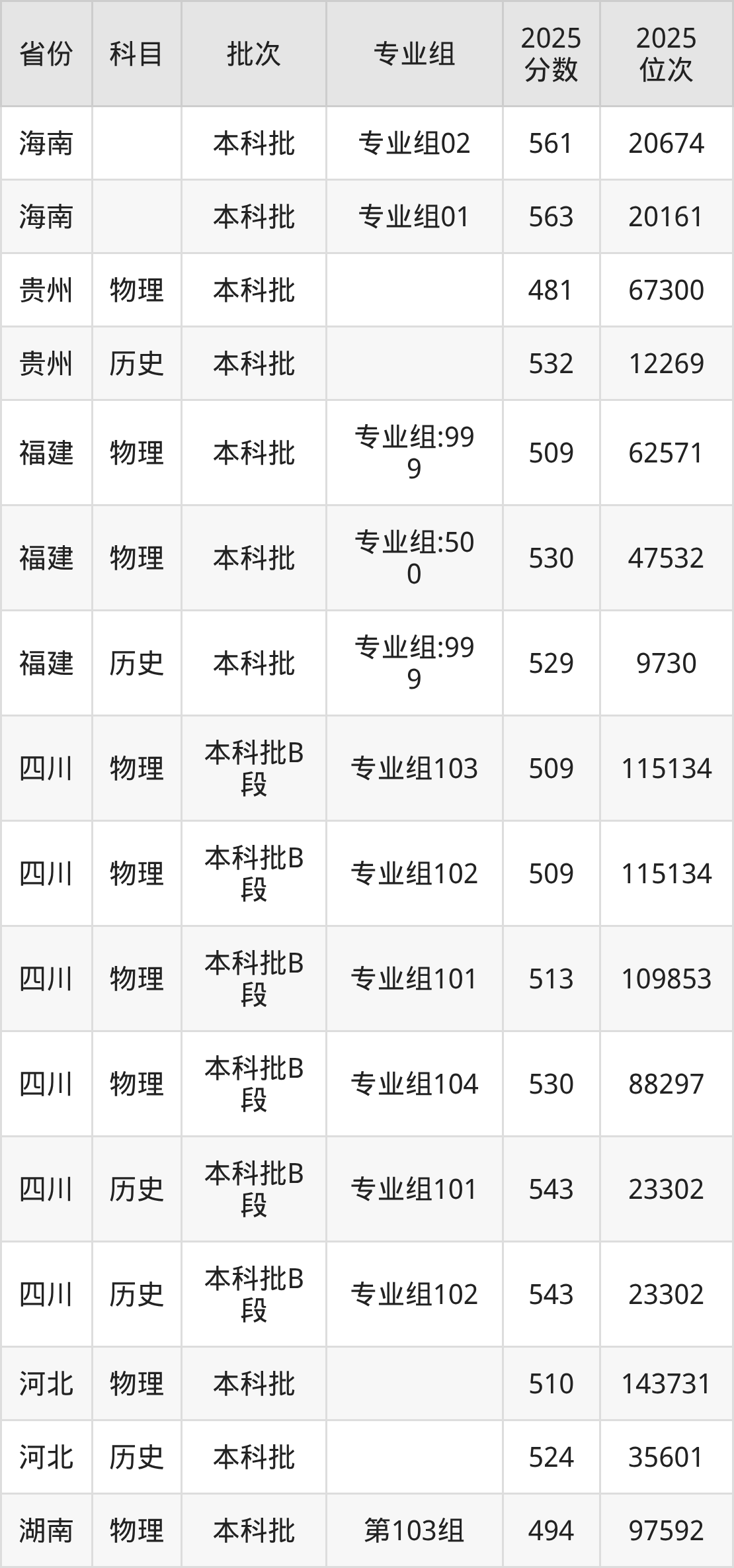 2025年投档录取最低分为512分,录取最低位次为14858名。