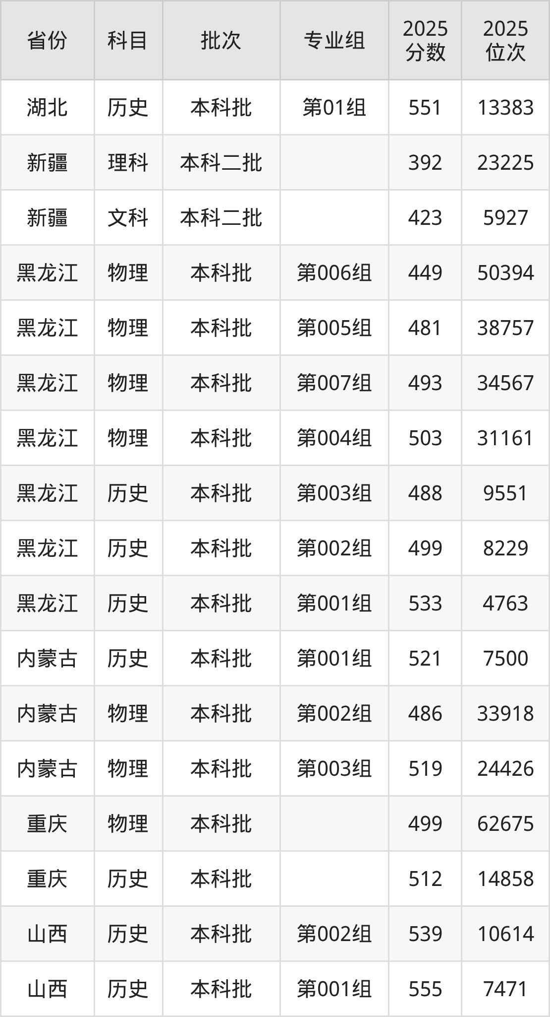 2025年投档录取最低分为499分,录取最低位次为62675名。