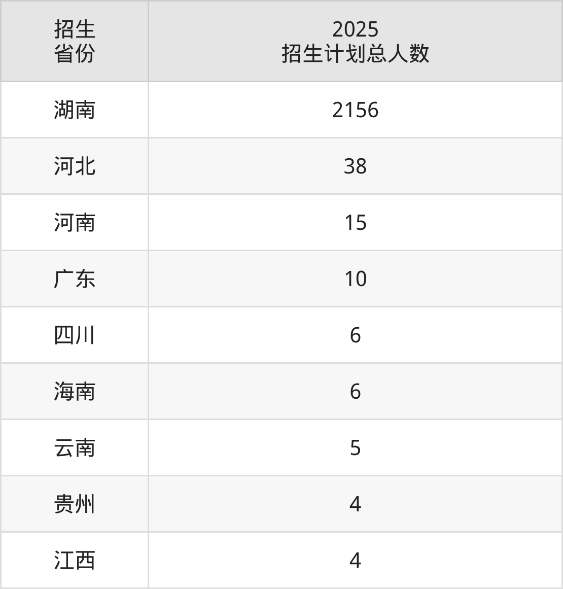 2025年郴州思科职业学院面向全国9个省市开展专科招生;招生专业共22个,招生人数共2244人。2025年在湖南省招生计划总人数是2156人,其中,郴州思科职业学院在湖南省招生人数最多的是护理。郴州思科职业学院在各省具体招生人数情况如下表。