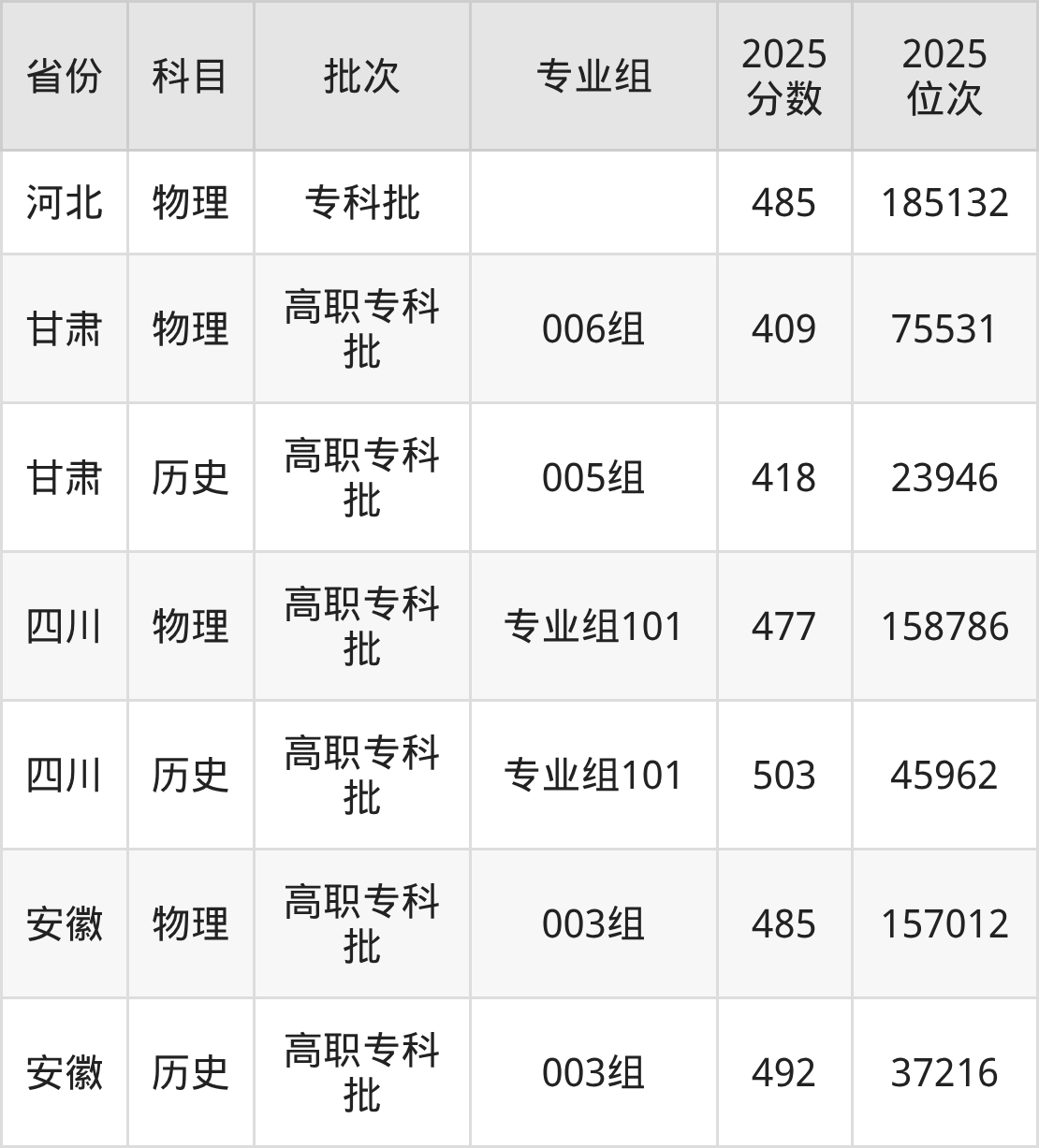 南京信息职业技术学院003组:2025年投档录取最低分为485分,录取最低位次为157012名。