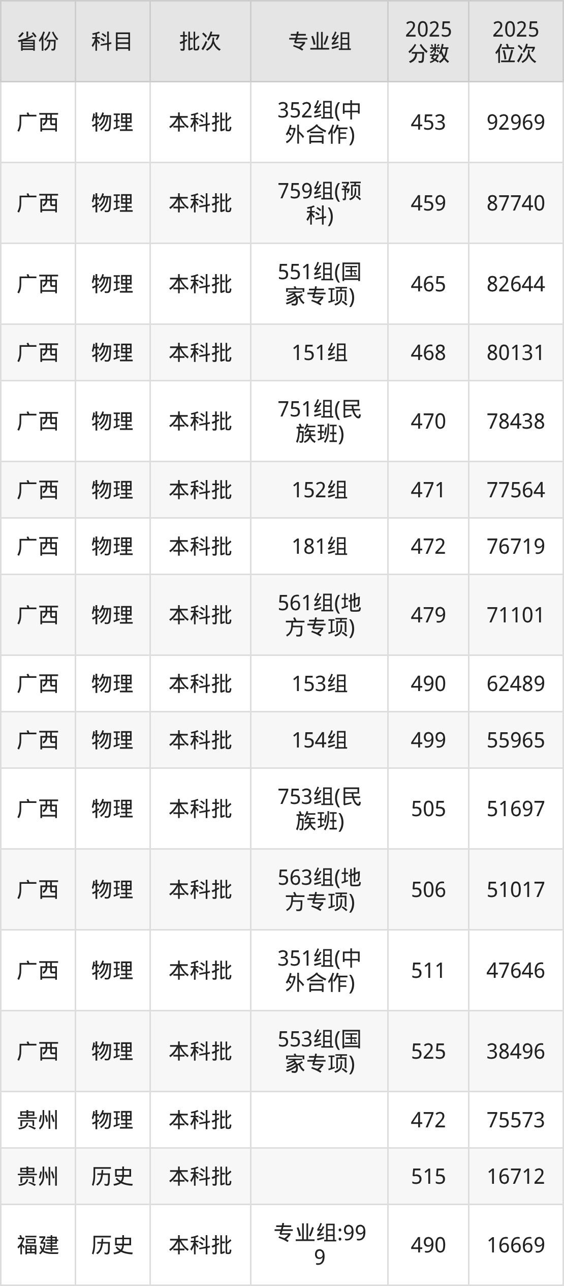 桂林理工大学第001组:2025年投档录取最低分为476分,录取最低位次为10726名。