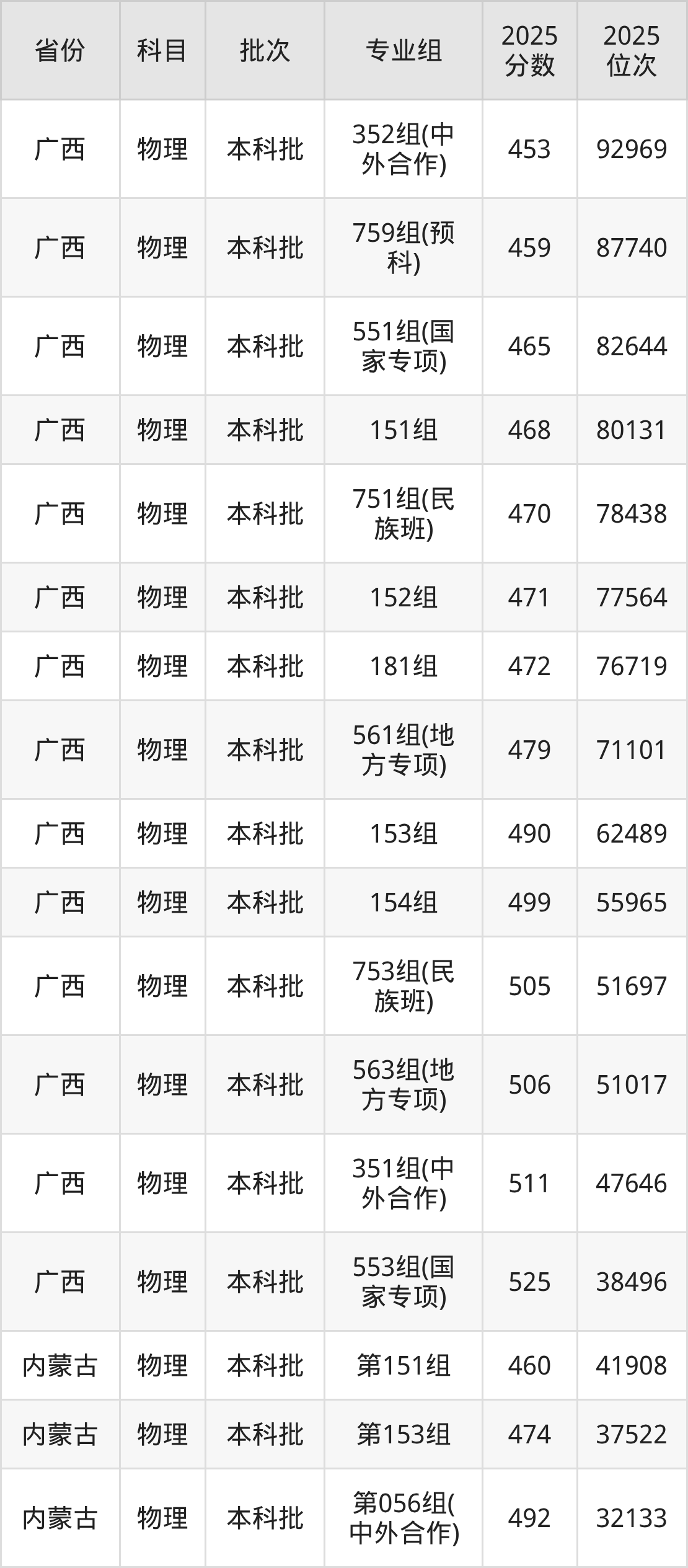 桂林理工大学第501组:2025年投档录取最低分为513分,录取最低位次为68471名。