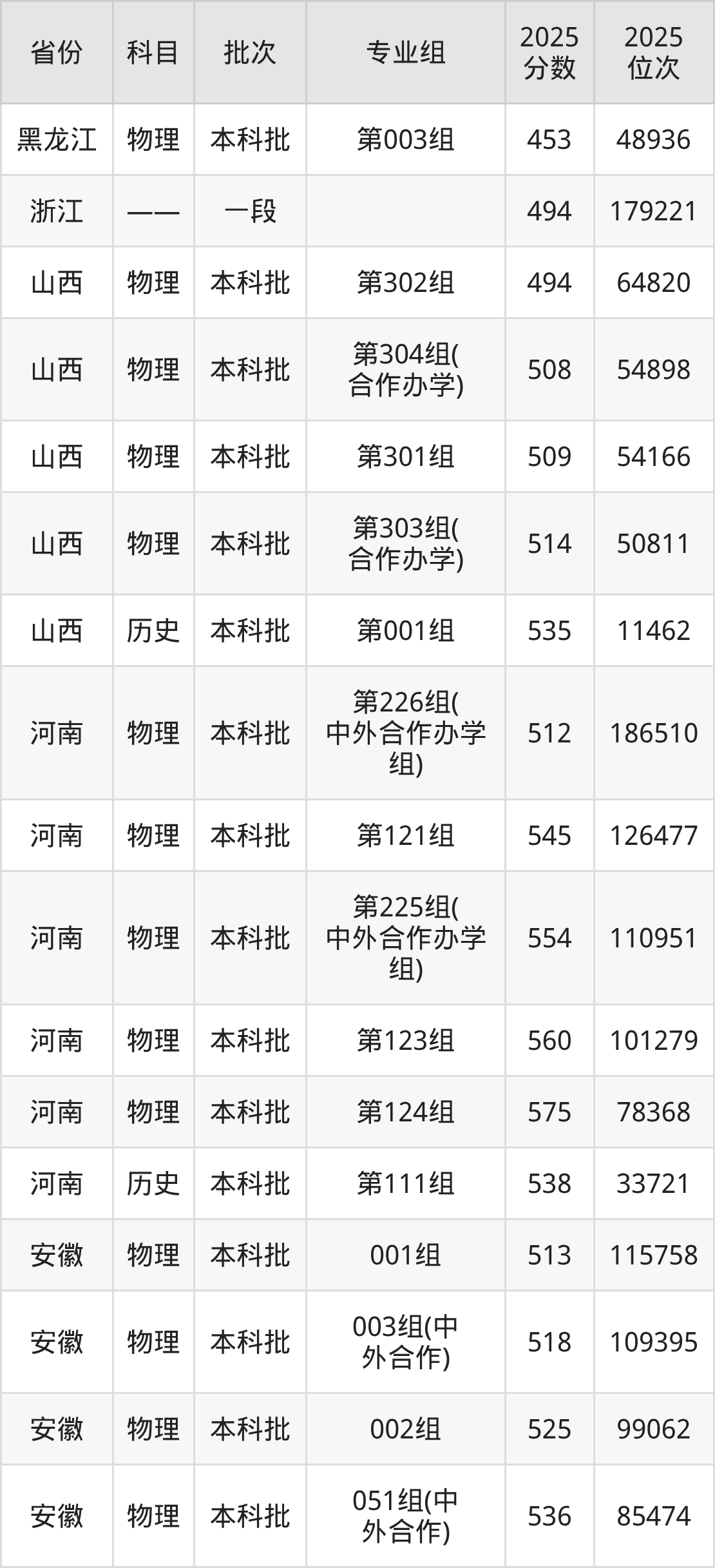 桂林理工大学第225组(中外合作办学组):2025年投档录取最低分为554分,录取最低位次为110951名。