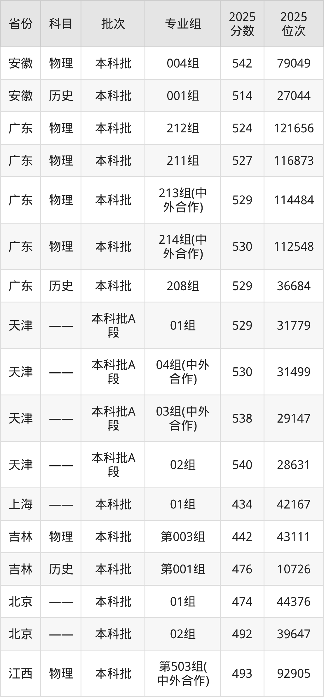 桂林理工大学051组(中外合作办学):2025年投档录取最低分为536分,录取最低位次为85474名。