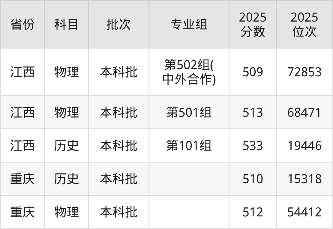桂林理工大学第502组(中外合作):2025年投档录取最低分为509分,录取最低位次为72853名。
