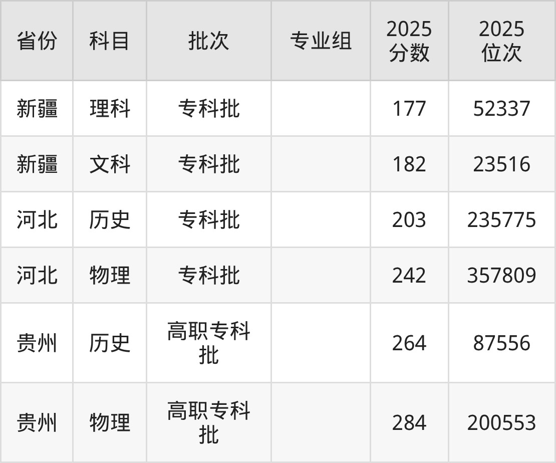 2025年投档录取最低分为264分,录取最低位次为87556名。
