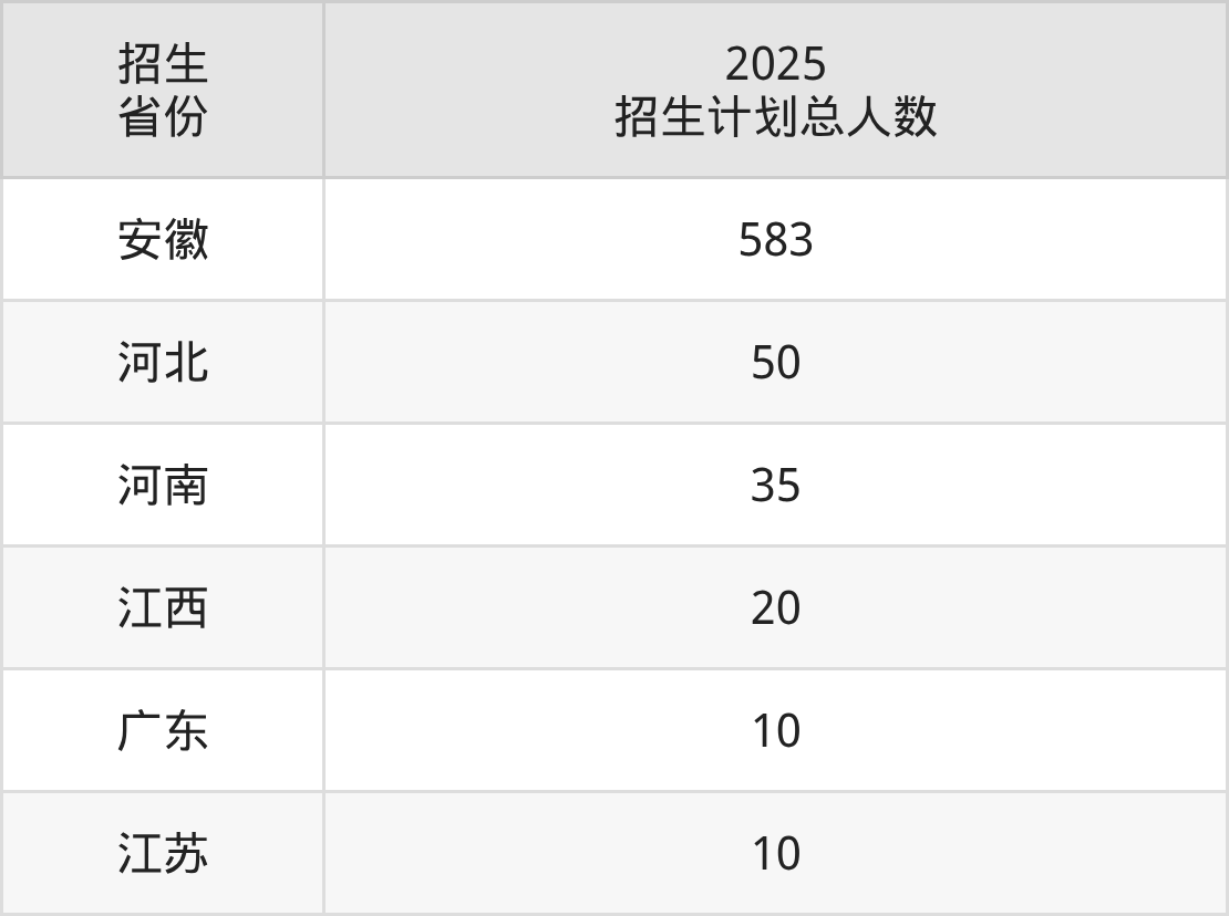 2025年安徽冶金科技职业学院面向全国6个省市开展专科招生;招生专业共18个,招生人数共708人。2025年在安徽省招生计划总人数是583人,其中,安徽冶金科技职业学院在安徽省招生人数最多的是计算机网络技术。安徽冶金科技职业学院在各省具体招生人数情况如下表。