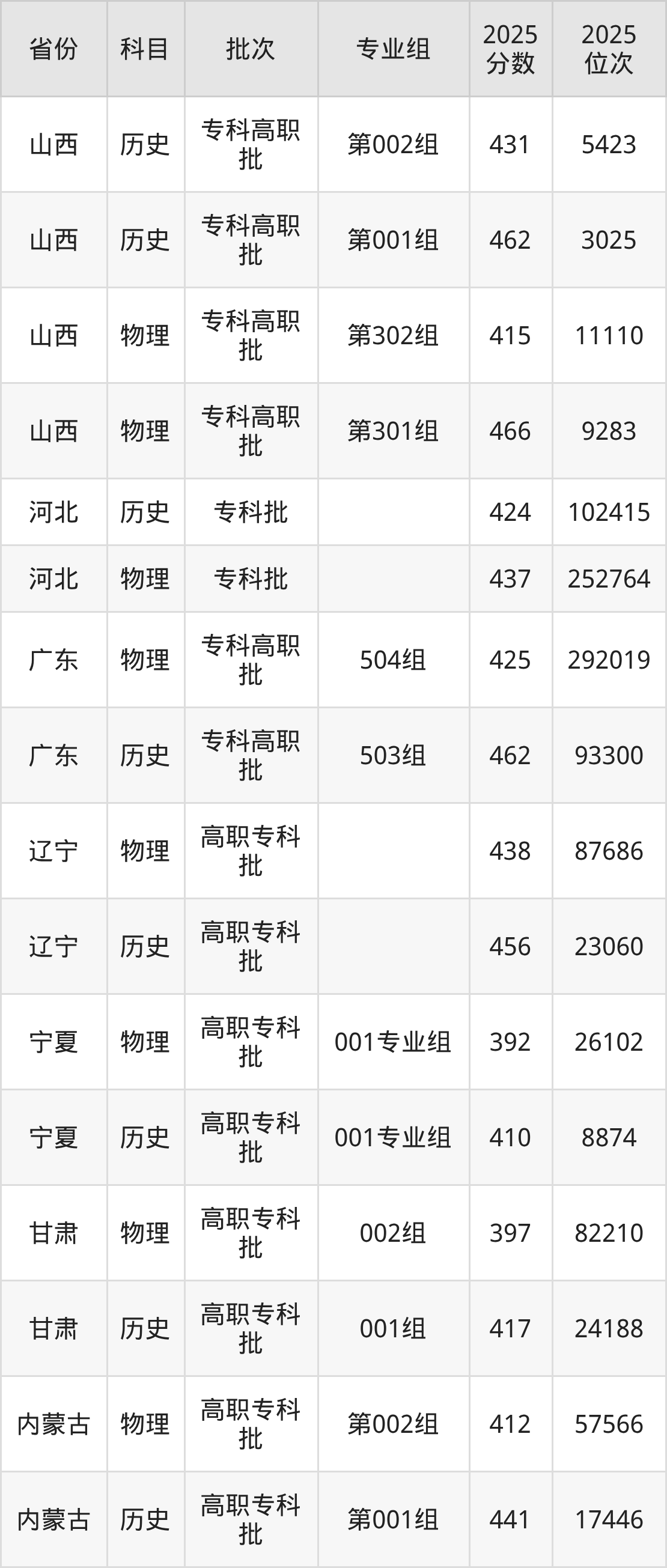 河北轨道运输职业技术学院第001组:2025年投档录取最低分为462分,录取最低位次为3025名。