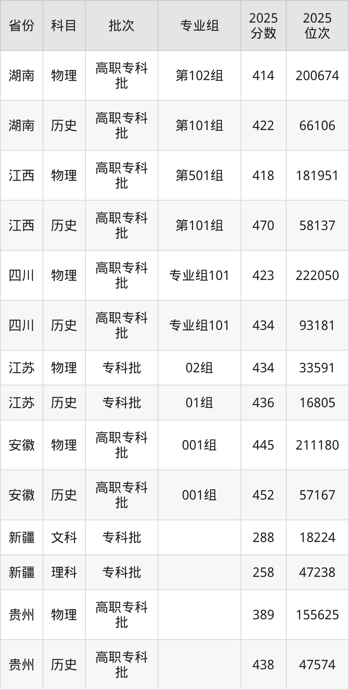 普通类专科物理类最低418分,专科历史类最低470分