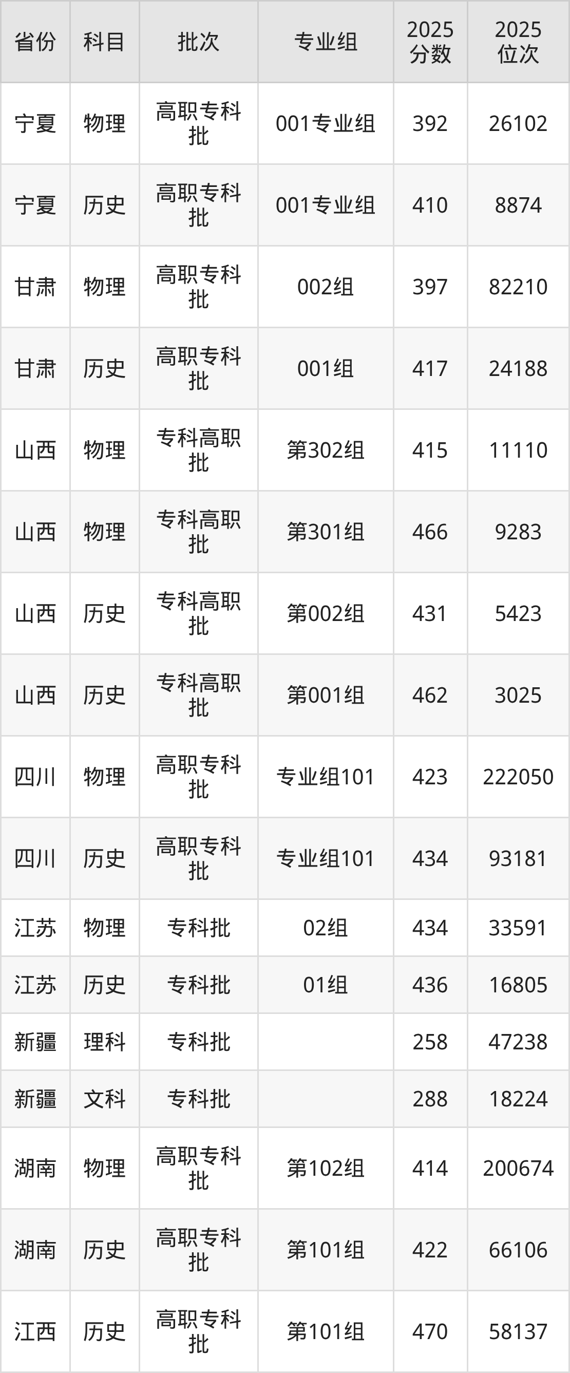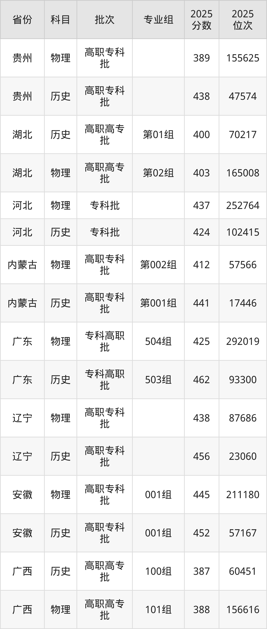 下面是2025年河北轨道运输职业技术学院全国录取分数线一览表,请查阅。
