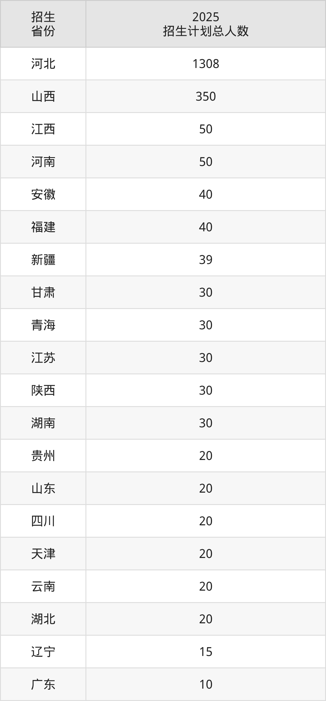 2025年河北轨道运输职业技术学院面向全国24个省市开展专科招生;招生专业共44个,招生人数共2210人。2025年在河北省招生计划总人数是1308人,其中,河北轨道运输职业技术学院在河北省招生人数最多的是民航运输服务。河北轨道运输职业技术学院在各省具体招生人数情况如下表。