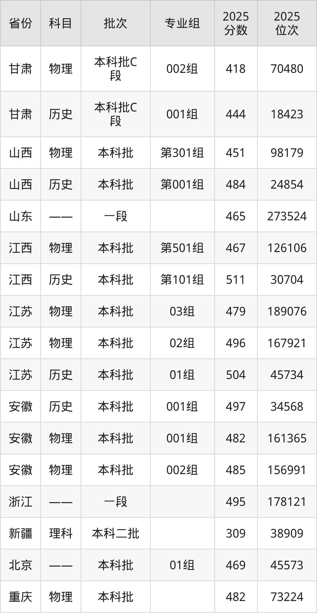 2025年投档录取最低分为482分,录取最低位次为73224名。