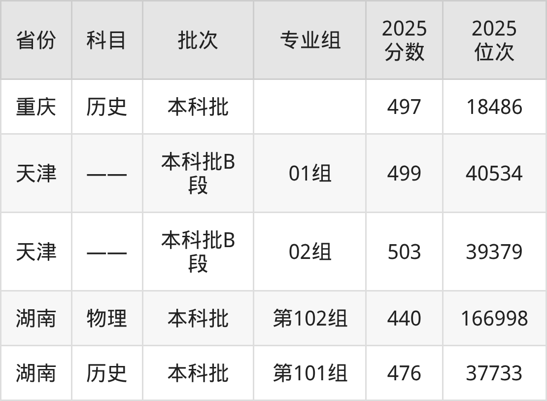 2025年投档录取最低分为497分,录取最低位次为18486名。