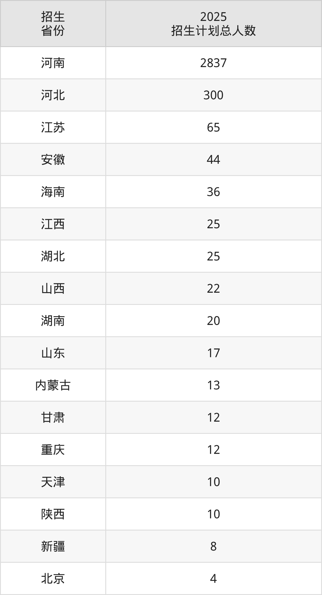 2025年郑州工商学院面向全国17个省市开展本科招生;招生专业共30个,招生人数共3460人。2025年在河南省招生计划总人数是2837人,其中,郑州工商学院在河南省招生人数最多的是机械电子工程。郑州工商学院在各省具体招生人数情况如下表。