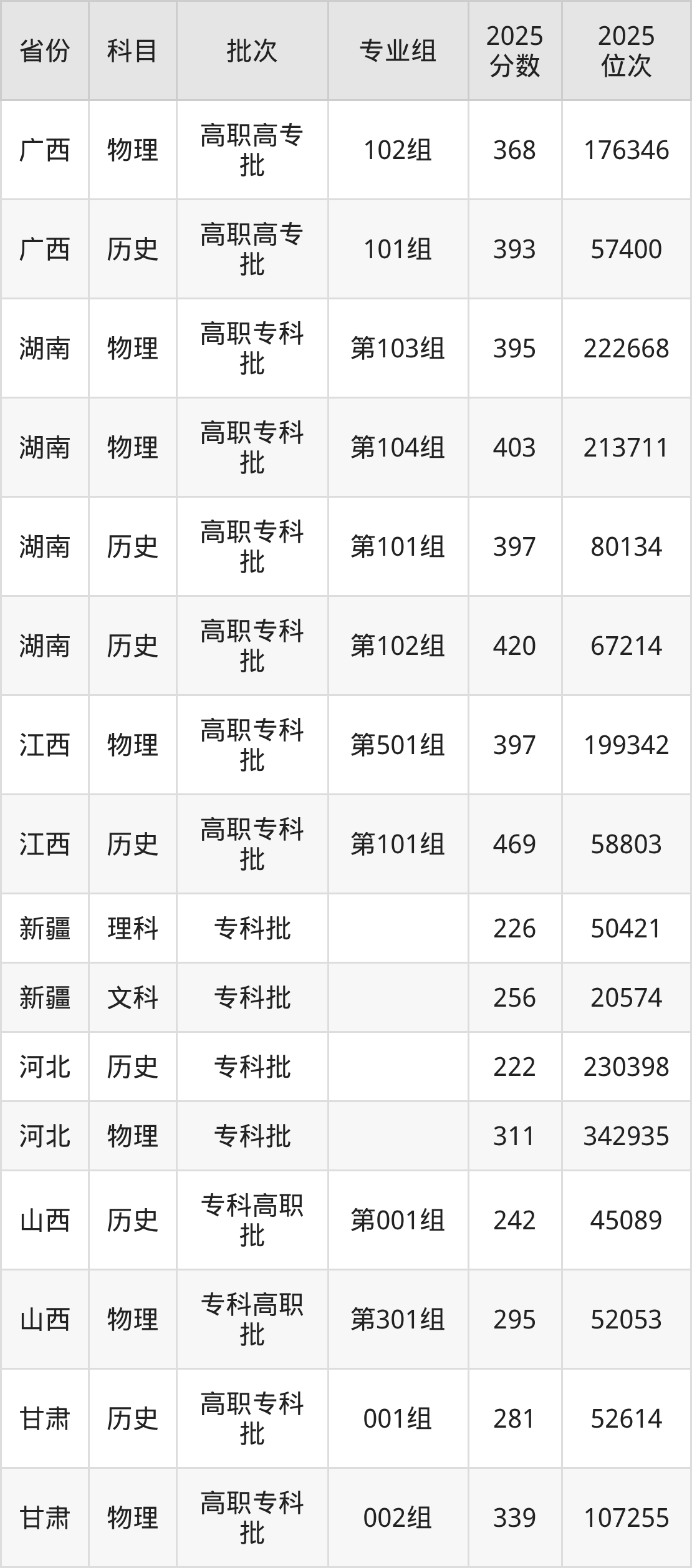下面是2025年广东农工商职业技术学院全国录取分数线一览表,请查阅。