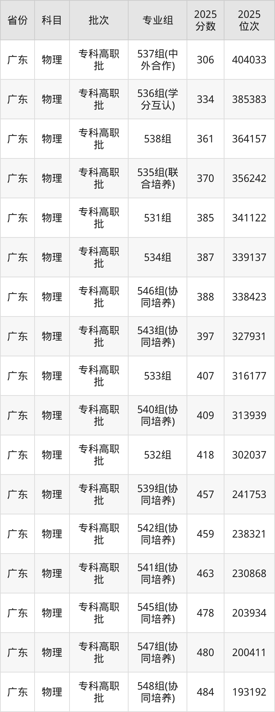 广东农工商职业技术学院537组(中外合作):2025年投档录取最低分为306分,录取最低位次为404033名。