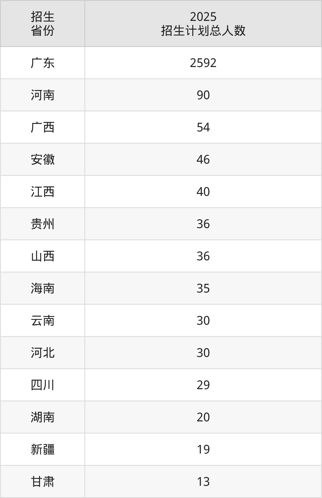 2025年广东农工商职业技术学院面向全国14个省市开展专科招生;招生专业共45个,招生人数共3070人。2025年在广东省招生计划总人数是2592人,其中,广东农工商职业技术学院在广东省招生人数最多的是电子信息工程技术。广东农工商职业技术学院在各省具体招生人数情况如下表。