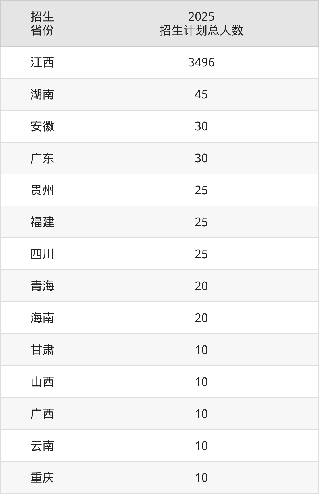 2025年江西工业职业技术学院面向全国14个省市开展专科招生;招生专业共44个,招生人数共3766人。2025年在江西省招生计划总人数是3496人,其中,江西工业职业技术学院在江西省招生人数最多的是机电一体化技术。江西工业职业技术学院在各省具体招生人数情况如下表。