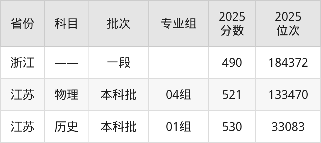 2025年苏州职业技术大学全国录取分数线是490分到530分,录取最低在浙江、录取最高在江苏历史类(01组)。各省各专业组最低分具有差异,详情如下: