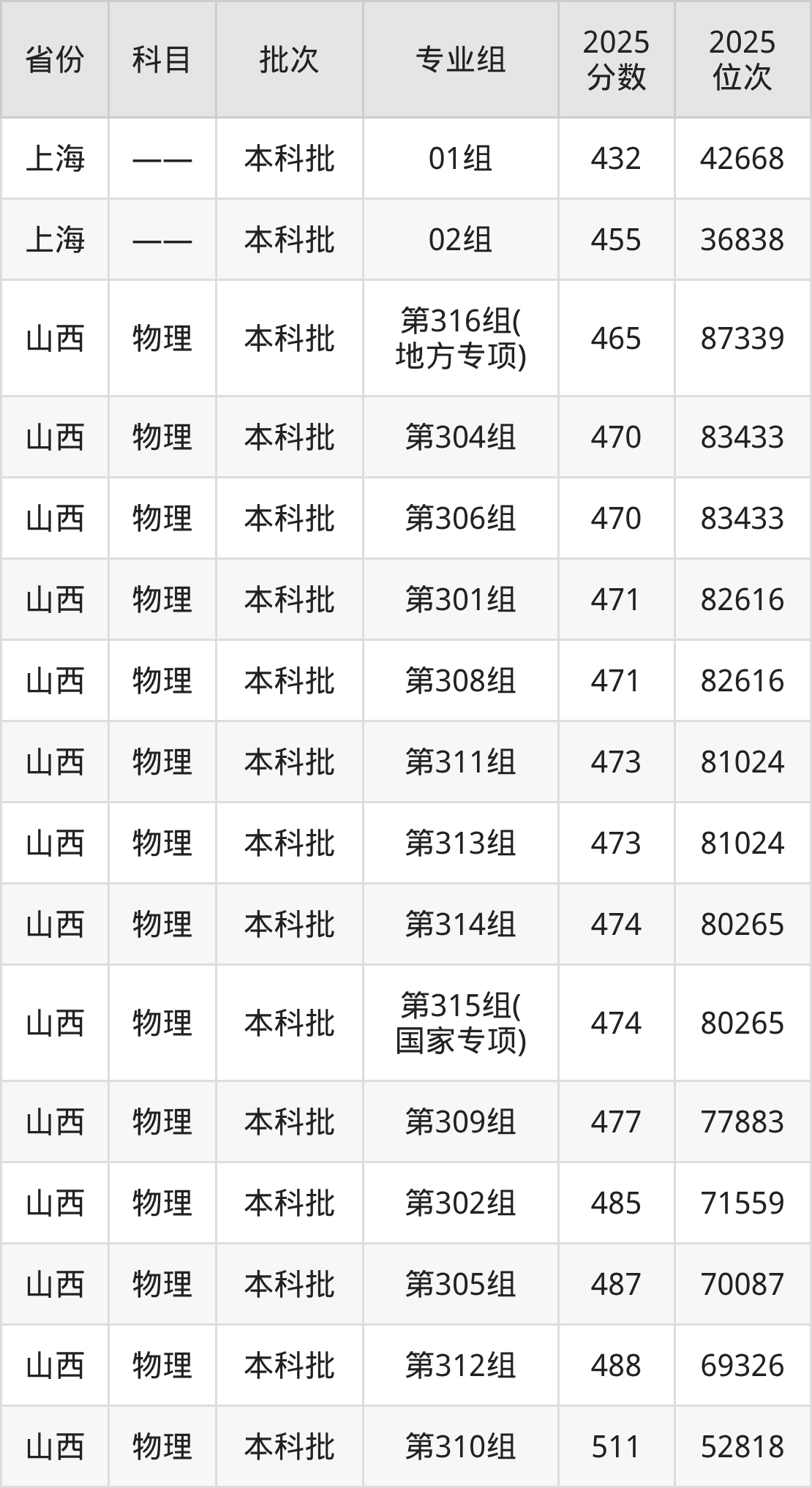 山西大同大学第315组(国家专项计划):2025年投档录取最低分为474分,录取最低位次为80265名。