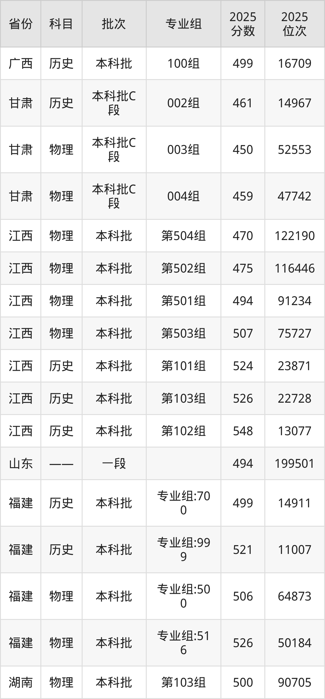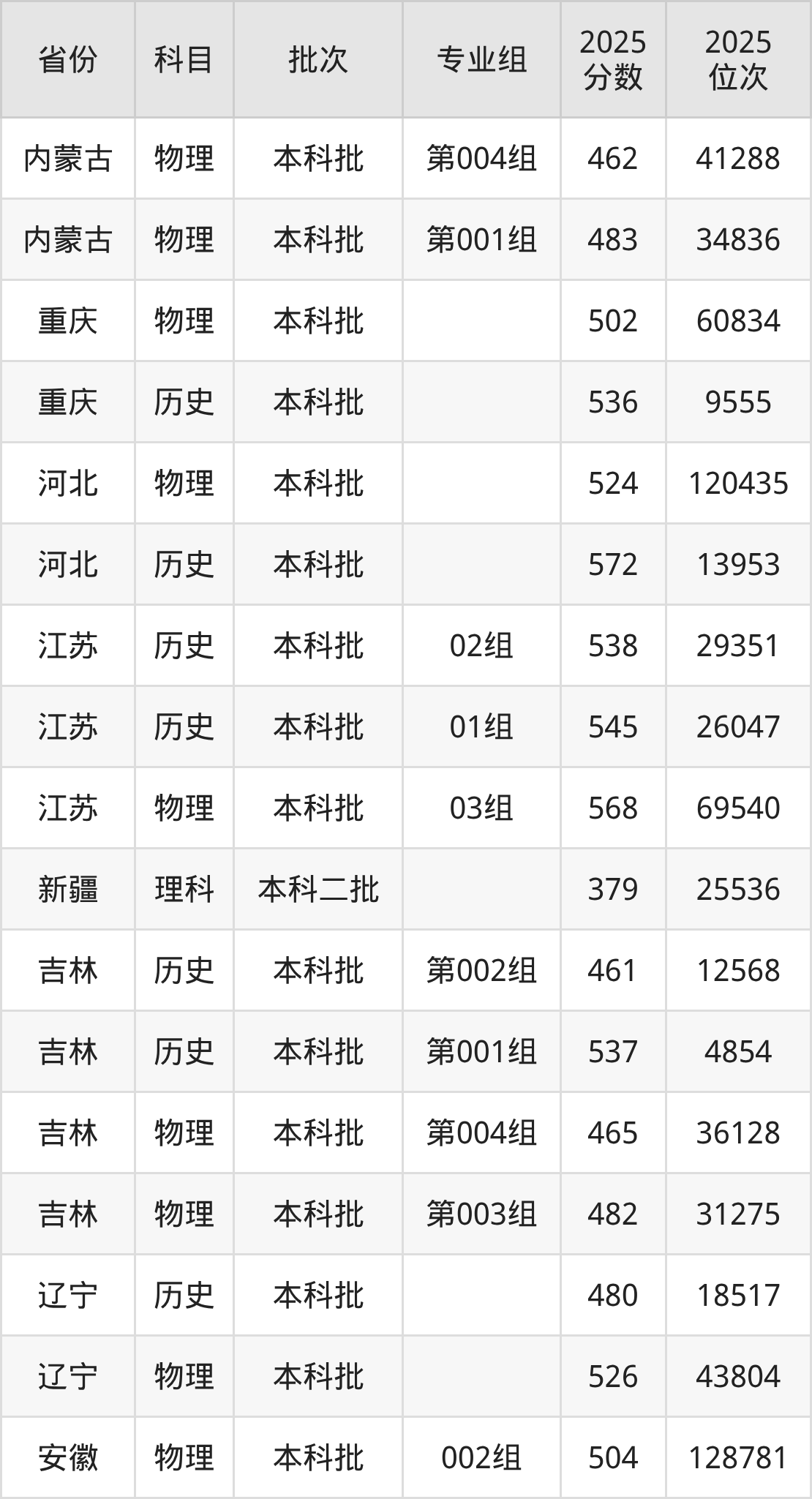 2025年投档录取最低分为480分,录取最低位次为18517名。
