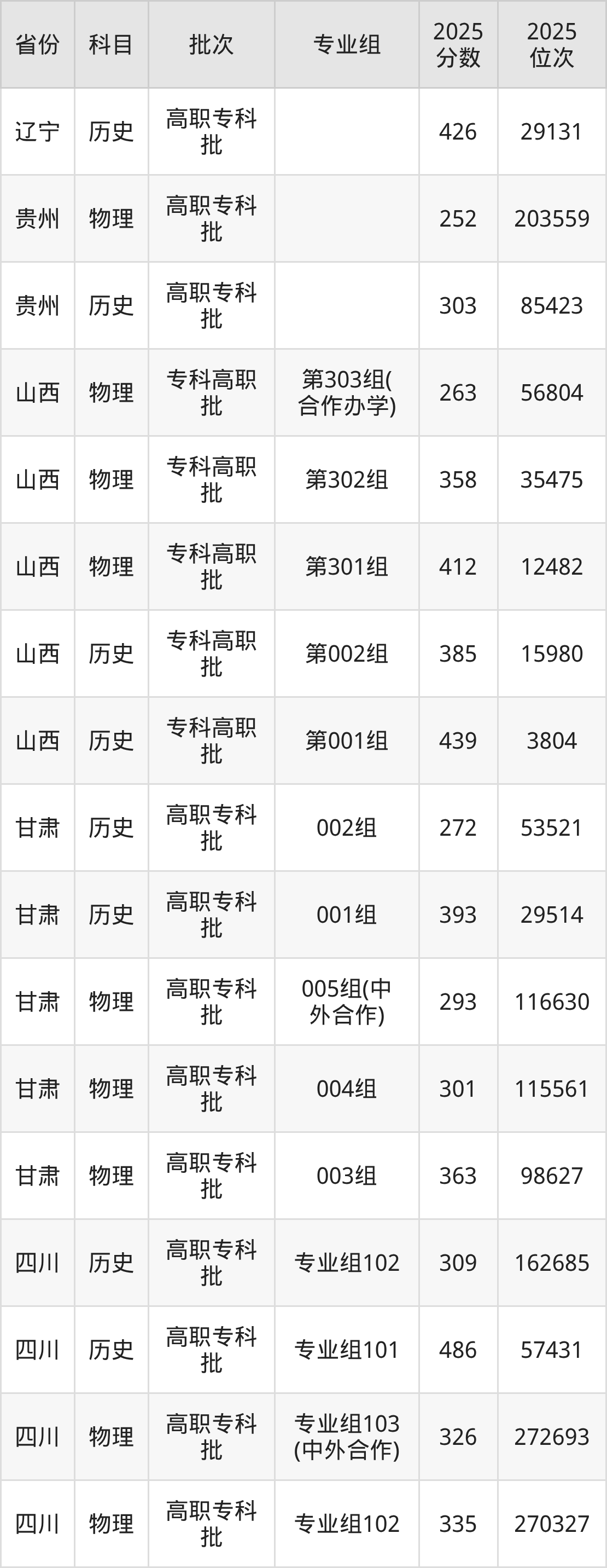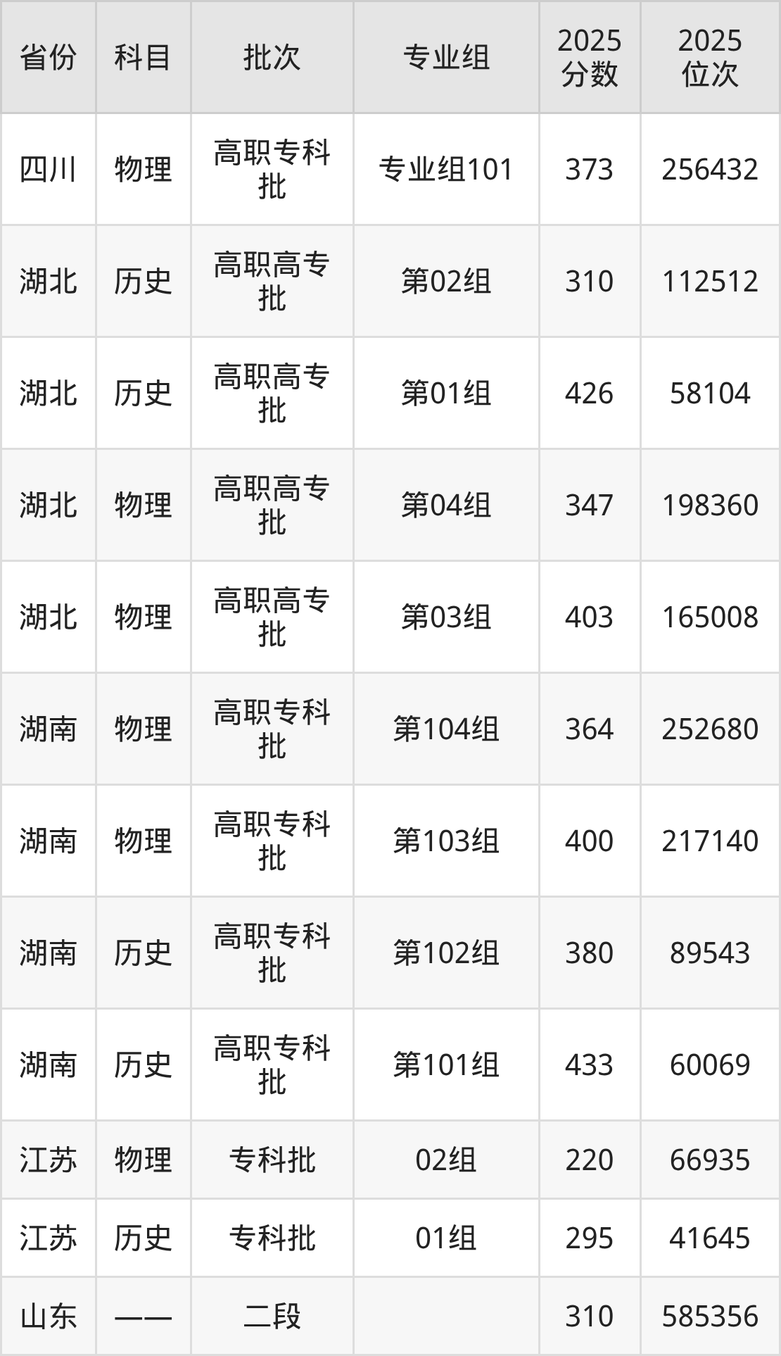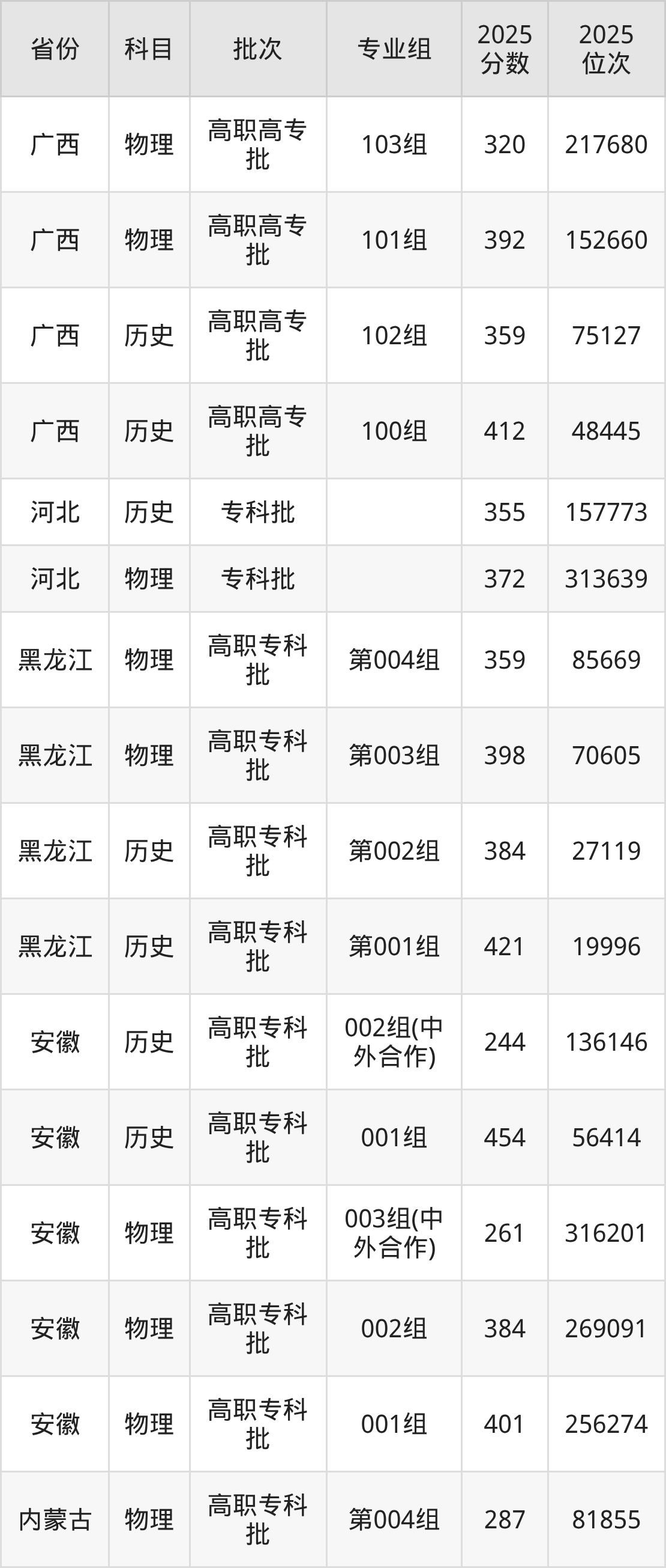 枣庄职业学院第002组:2025年投档录取最低分为384分,录取最低位次为27119名。