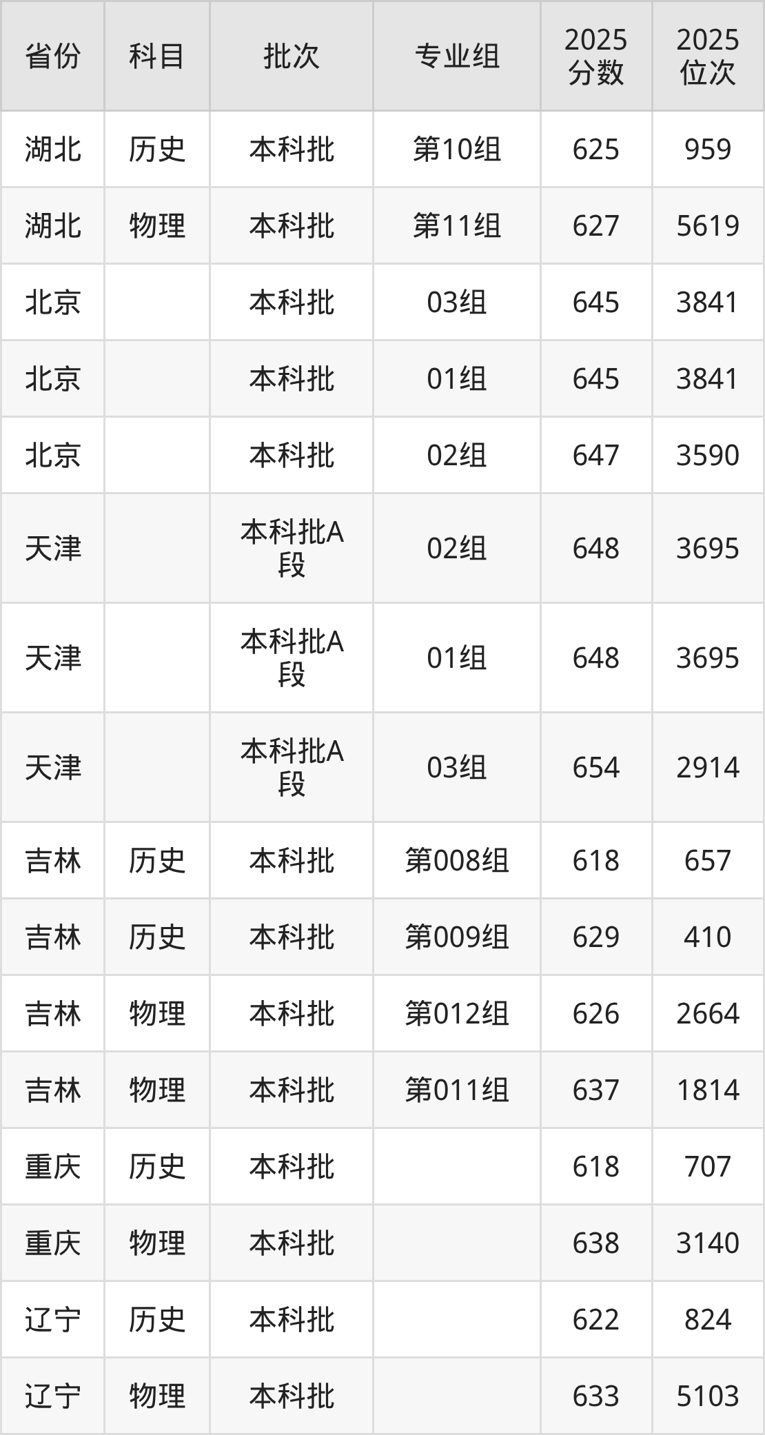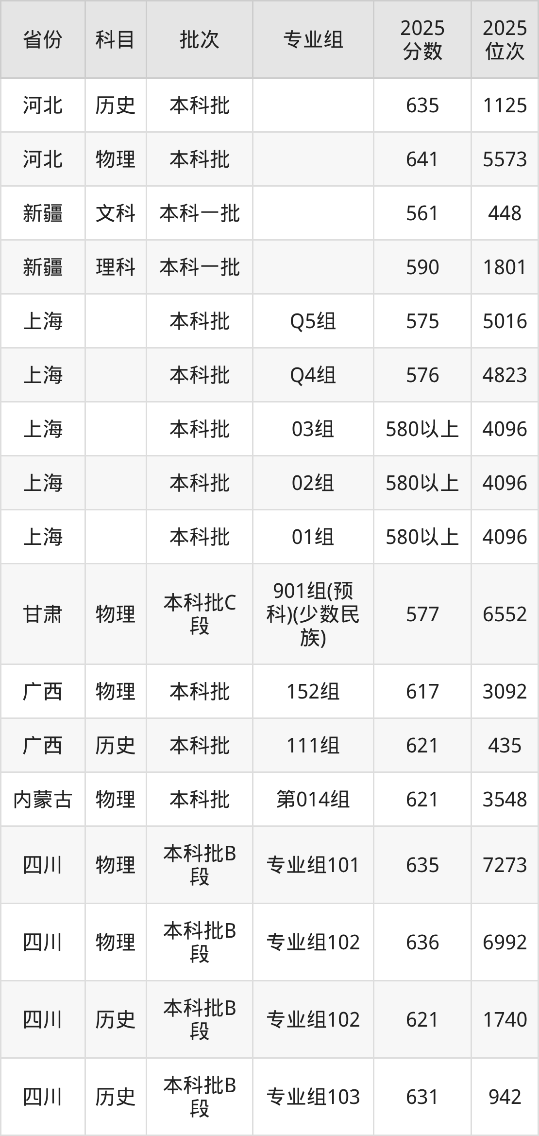 华东师范大学010组:2025年投档录取最低分为631分,录取最低位次为702名。