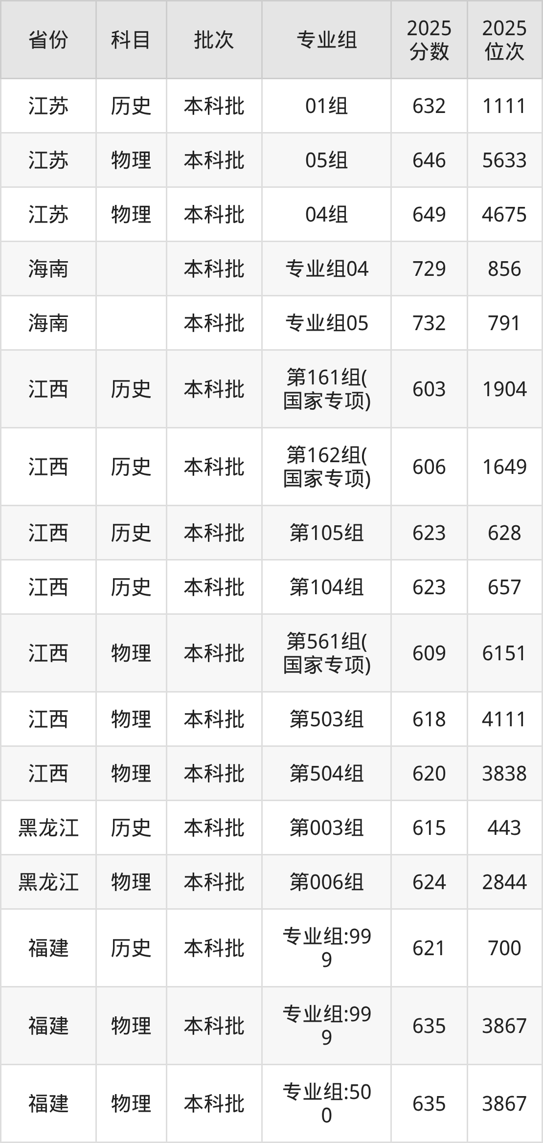 下面是2025年华东师范大学全国录取分数线一览表,请查阅。