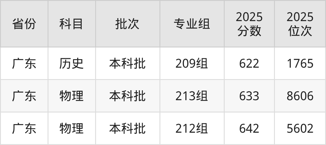 2025年在本科物理类进行招生,各专业组分数线详情如下: