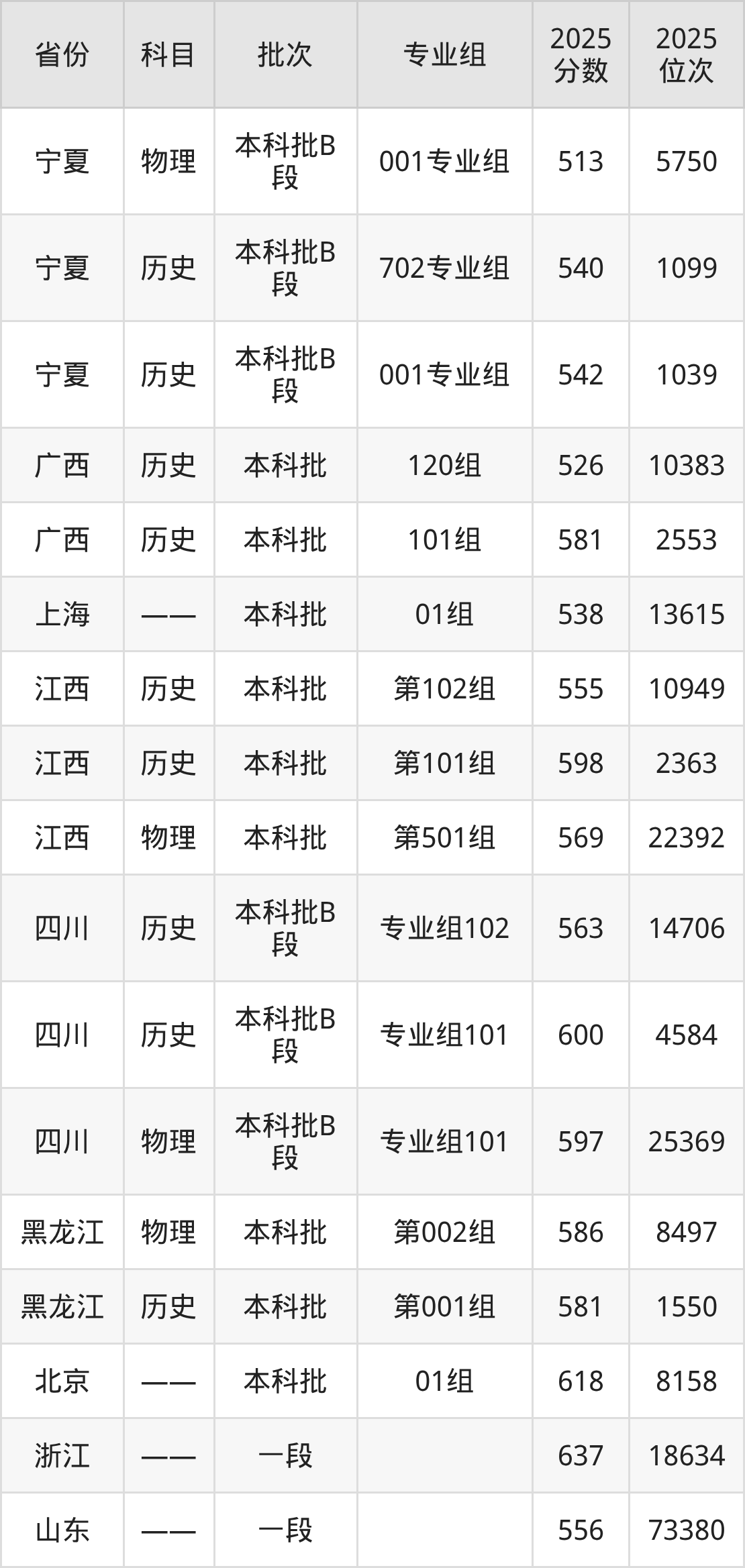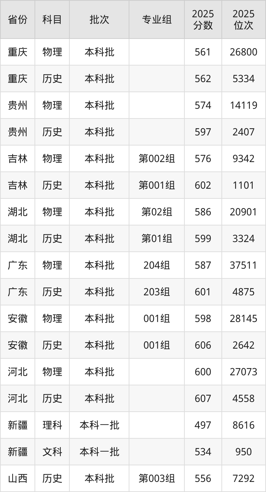 普通类本科历史类最低563分,本科物理类最低577分
