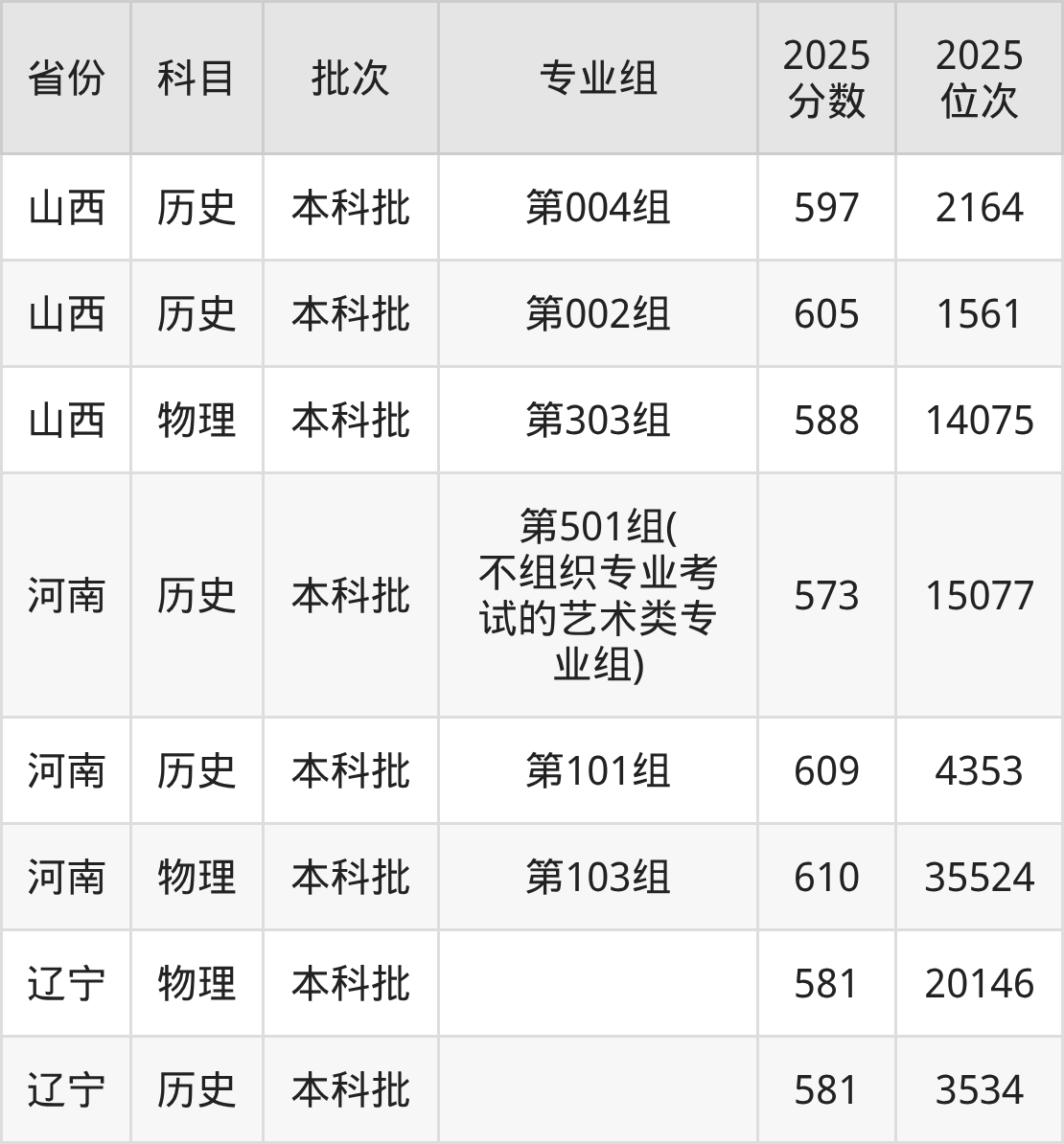 2025年投档录取最低分为581分,录取最低位次为20146名。