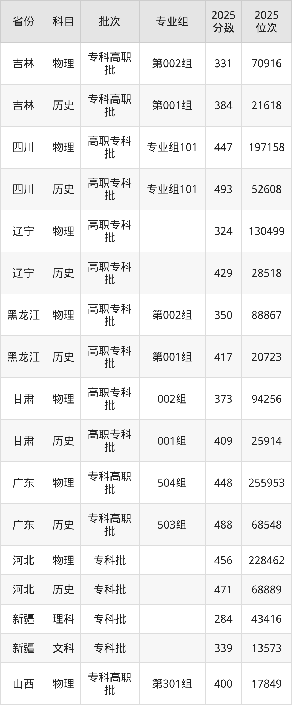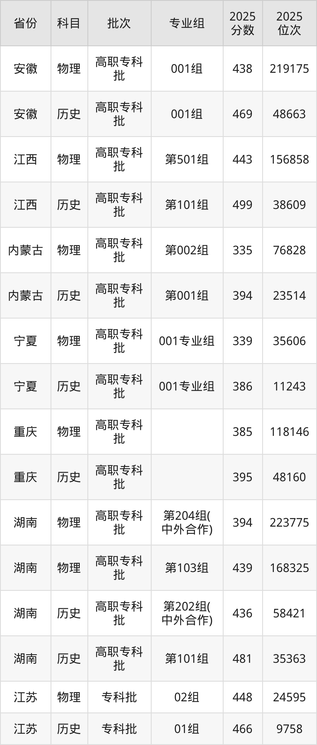 下面是2025年长沙民政职业技术学院全国录取分数线一览表,请查阅。