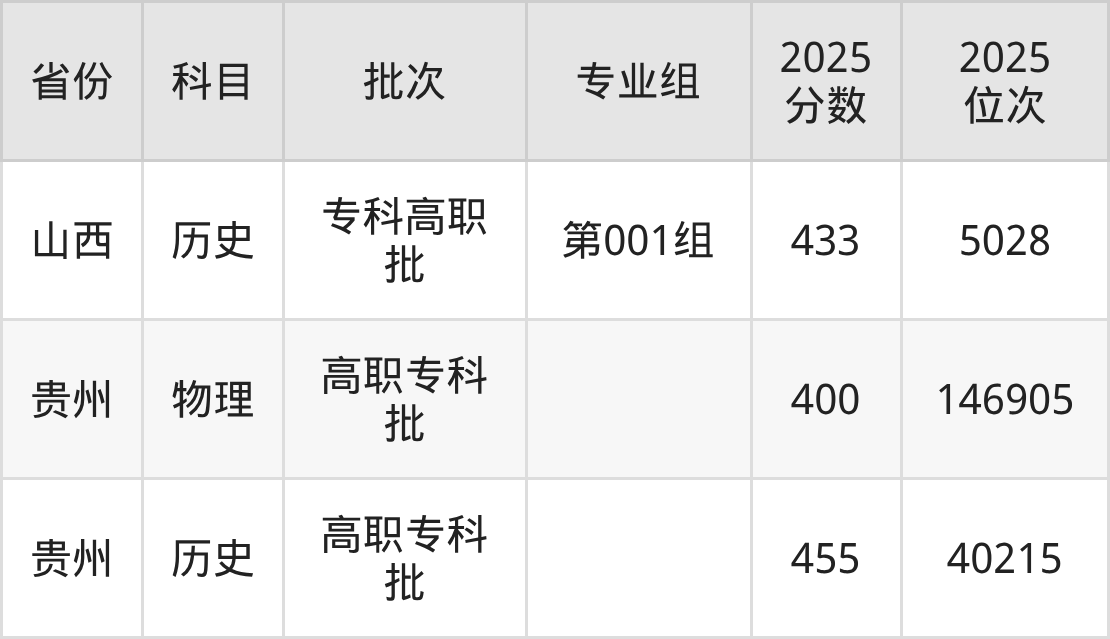 长沙民政职业技术学院第001组:2025年投档录取最低分为433分,录取最低位次为5028名。