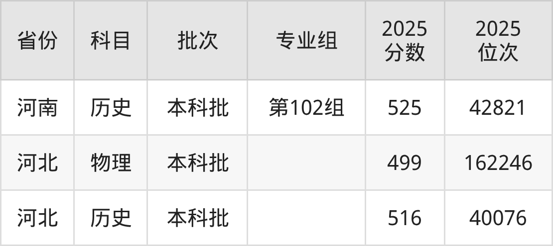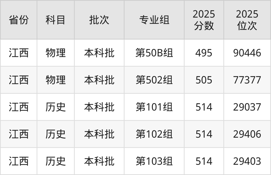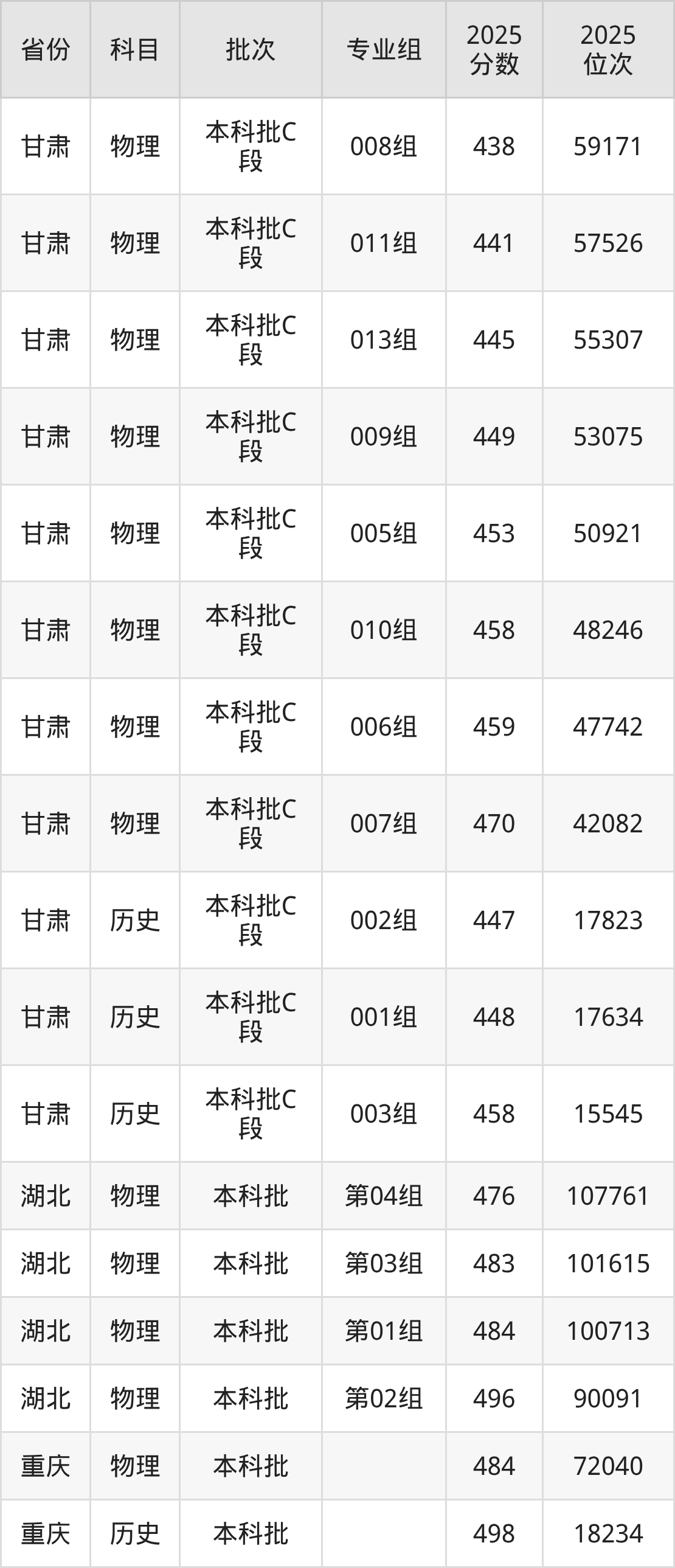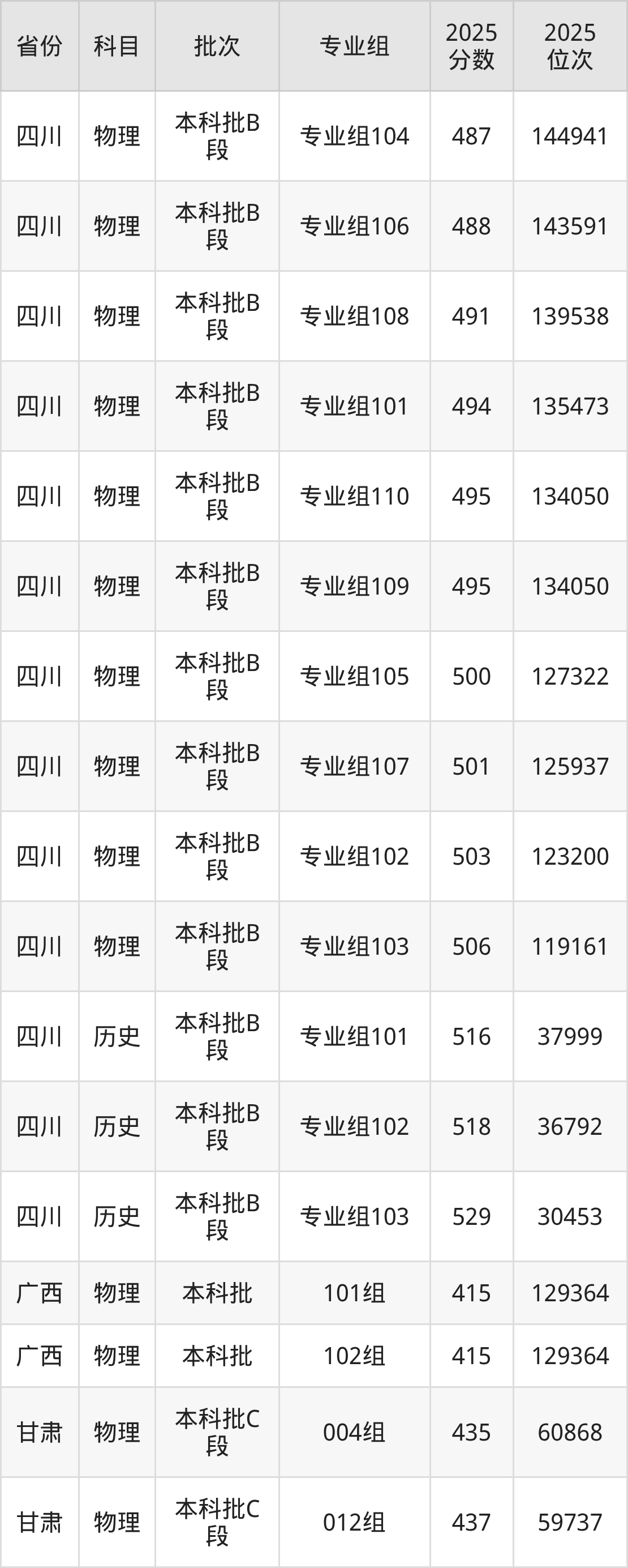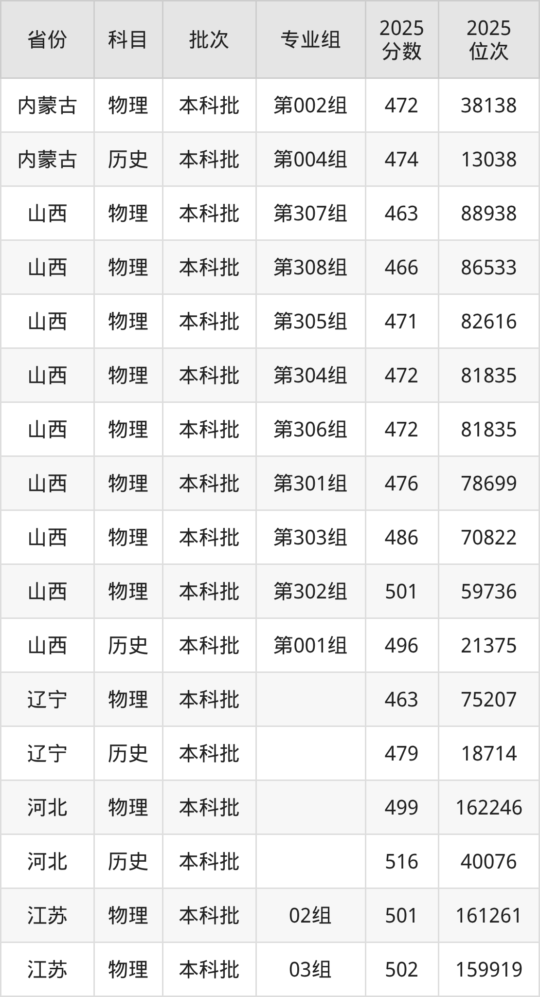 2025年在本科物理类进行招生,各专业组分数线详情如下: