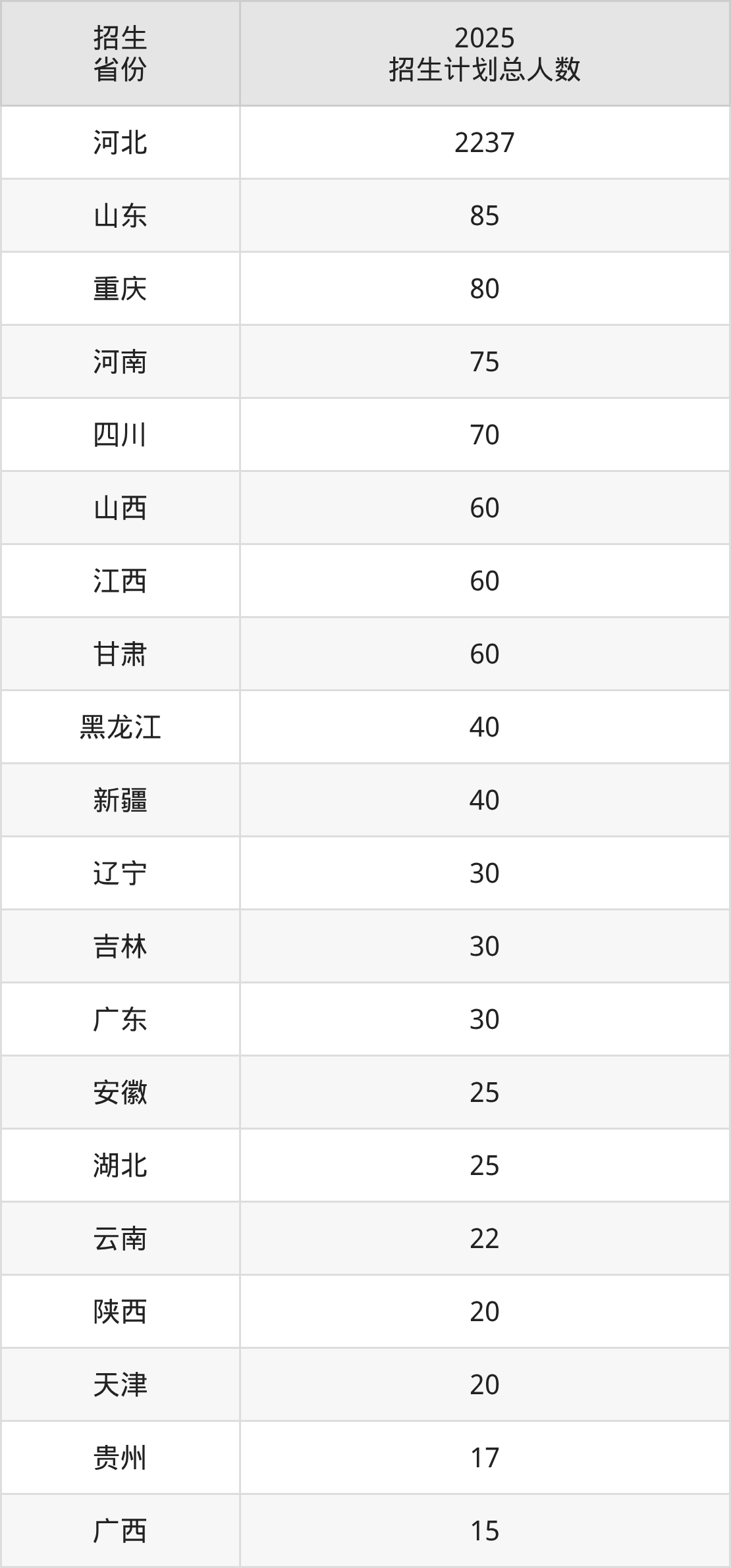 2025年河北工业职业技术大学面向全国23个省市开展本科招生;招生专业共35个,招生人数共3066人。2025年在河北省招生计划总人数是2237人,其中,河北工业职业技术大学在河北省招生人数最多的是自动化技术与应用。河北工业职业技术大学在各省具体招生人数情况如下表。