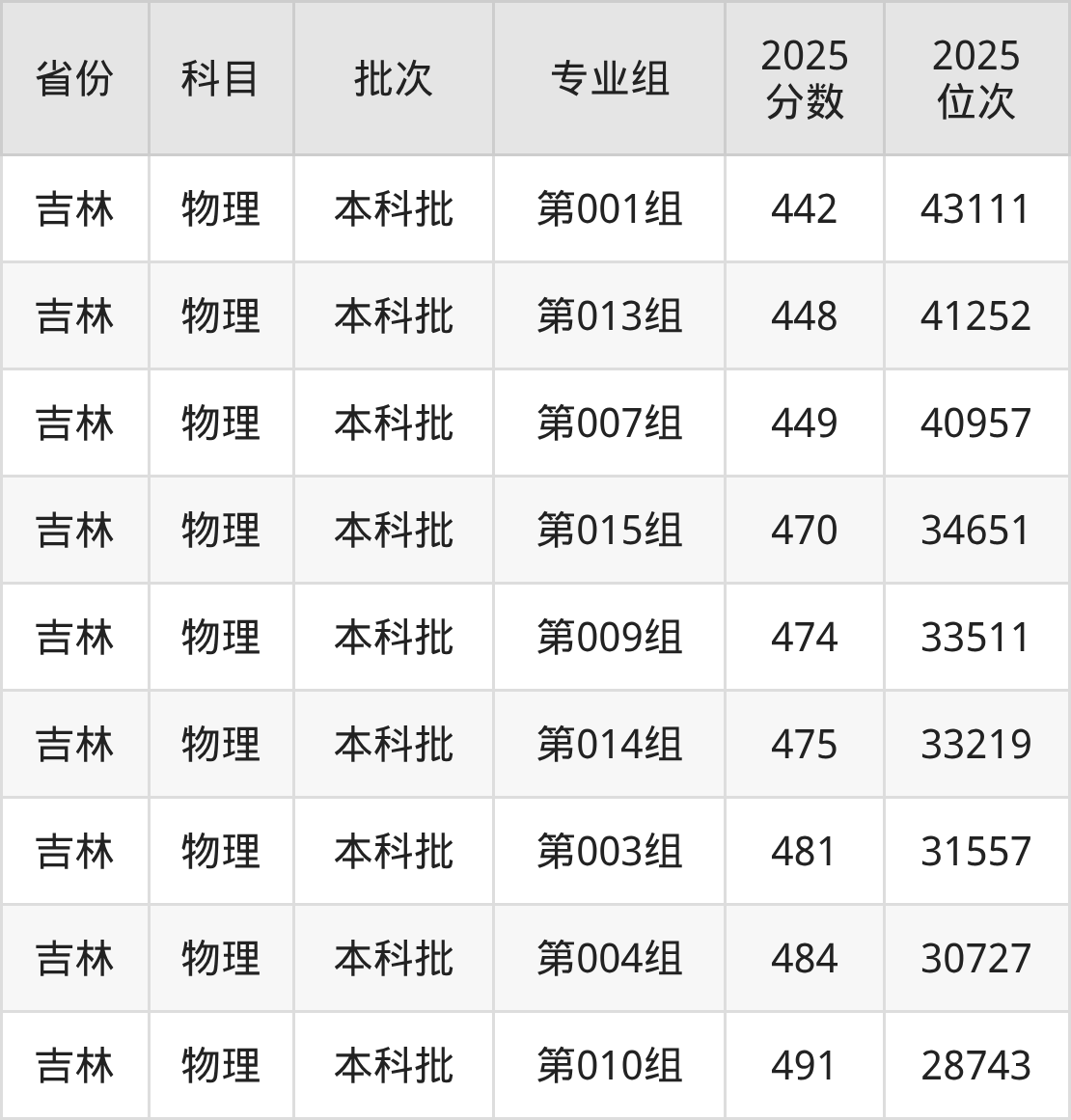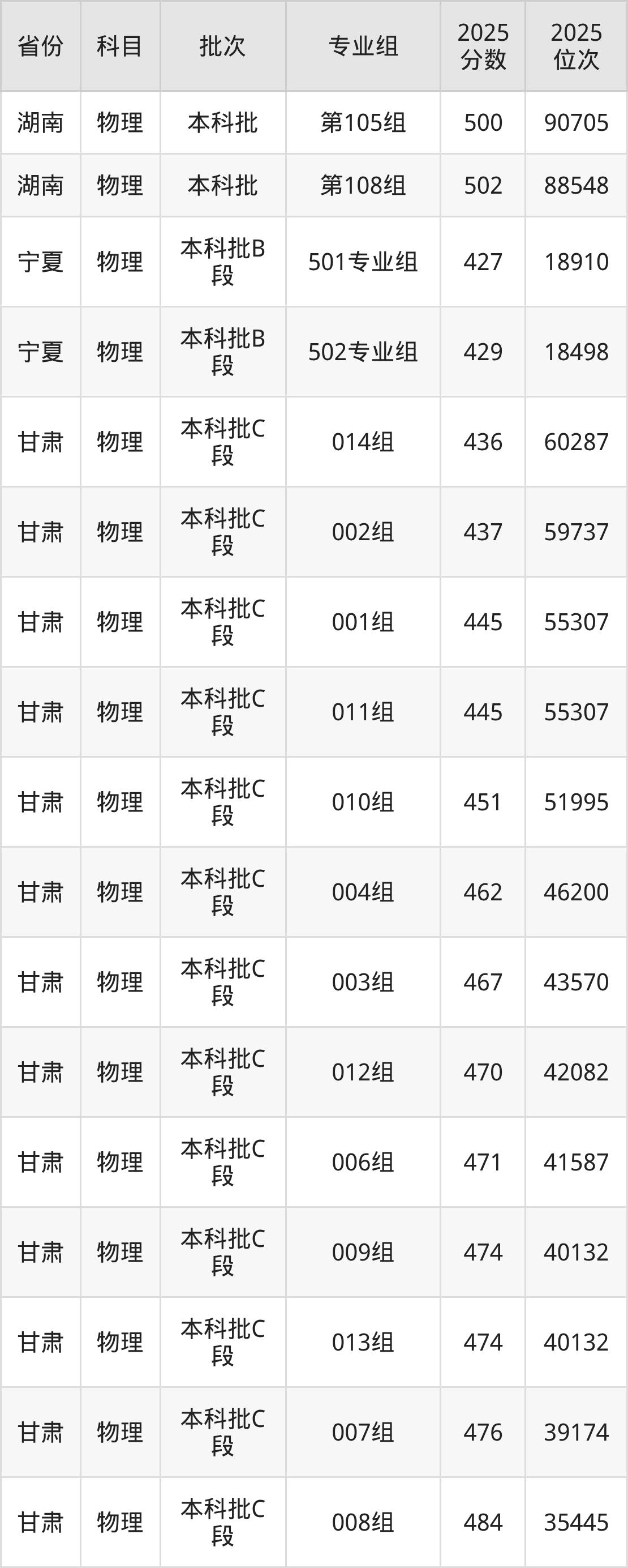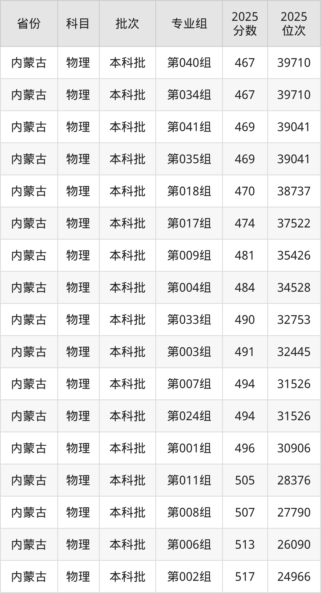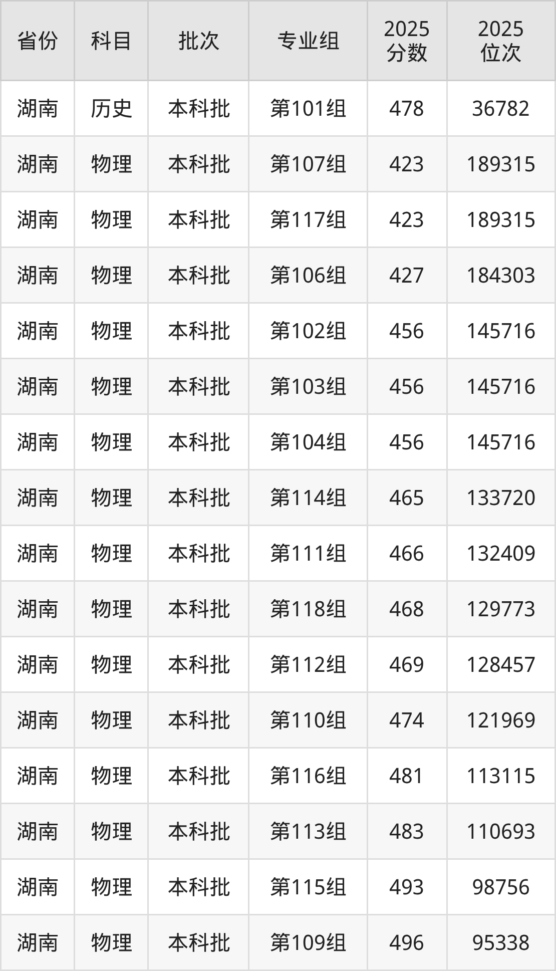 2025年在本科物理类进行招生,各专业组分数线详情如下: