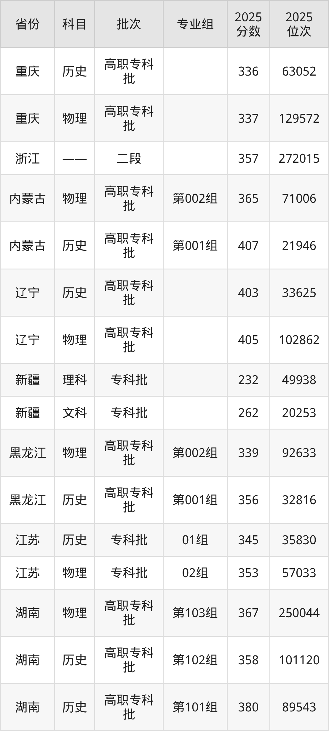 吉林交通职业技术学院第002组:2025年投档录取最低分为339分,录取最低位次为92633名。
