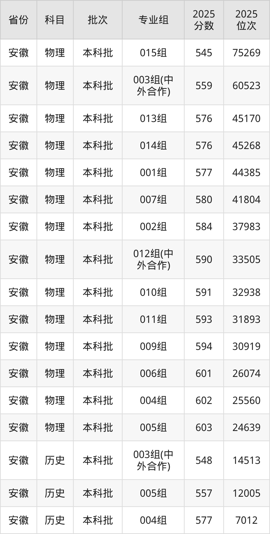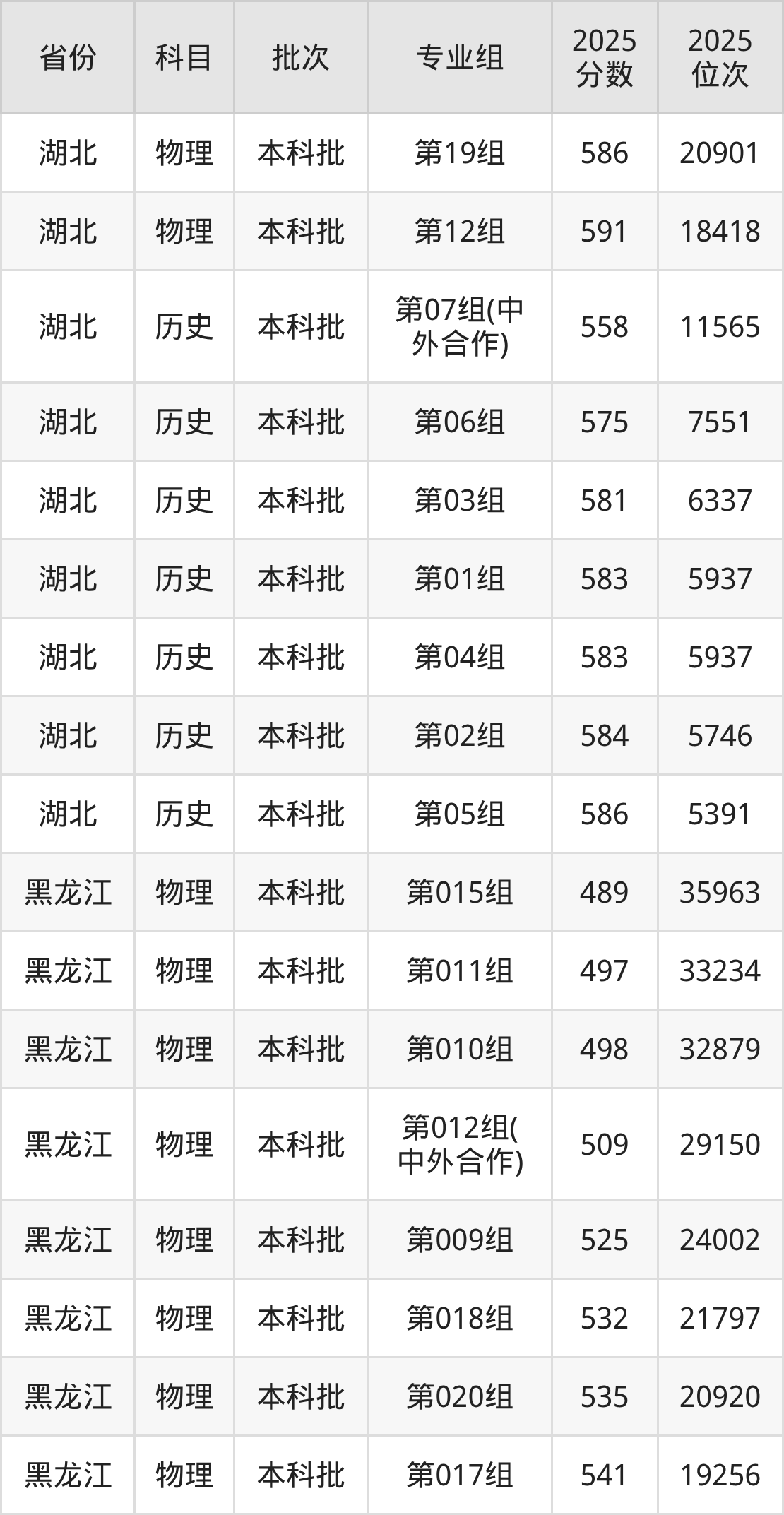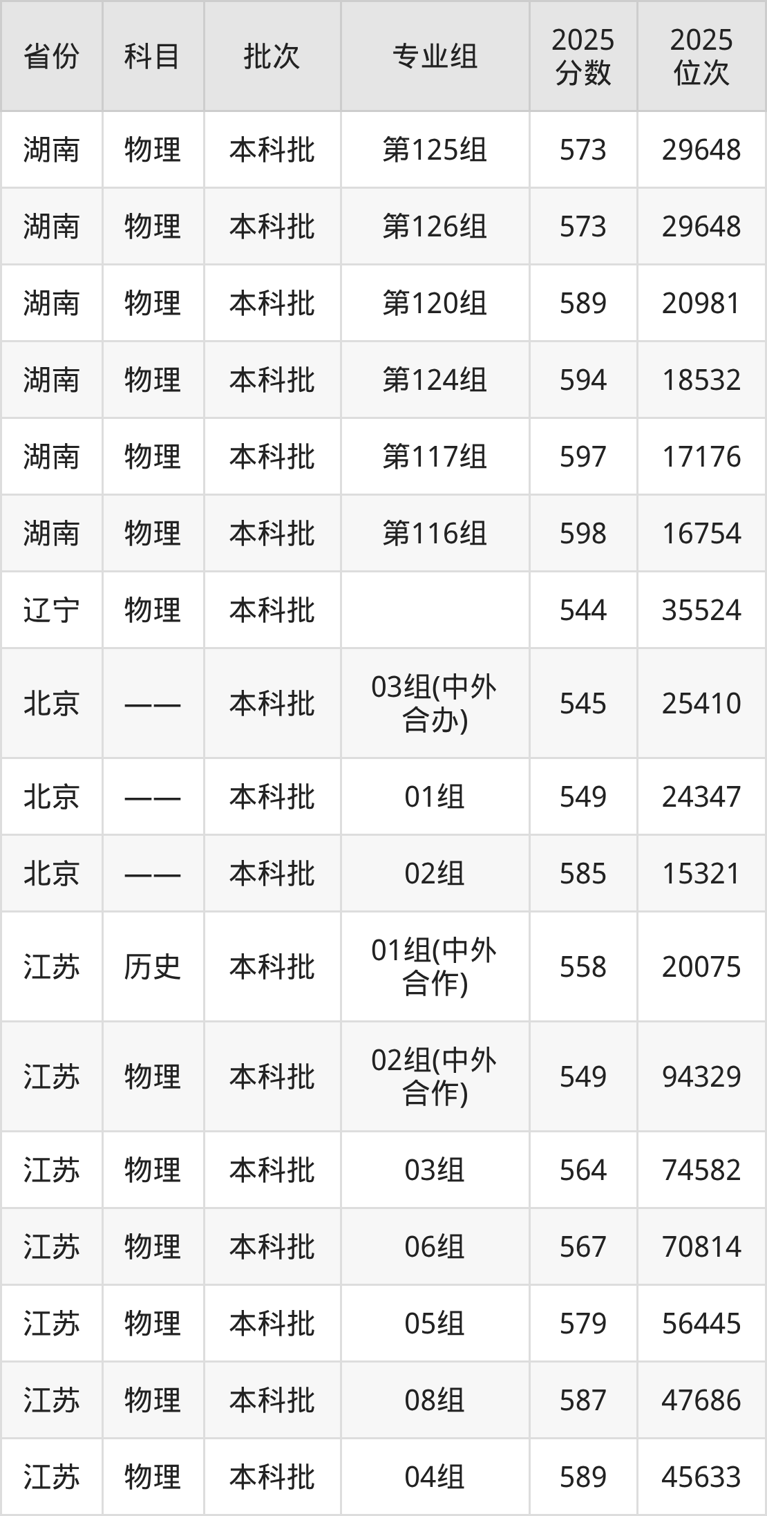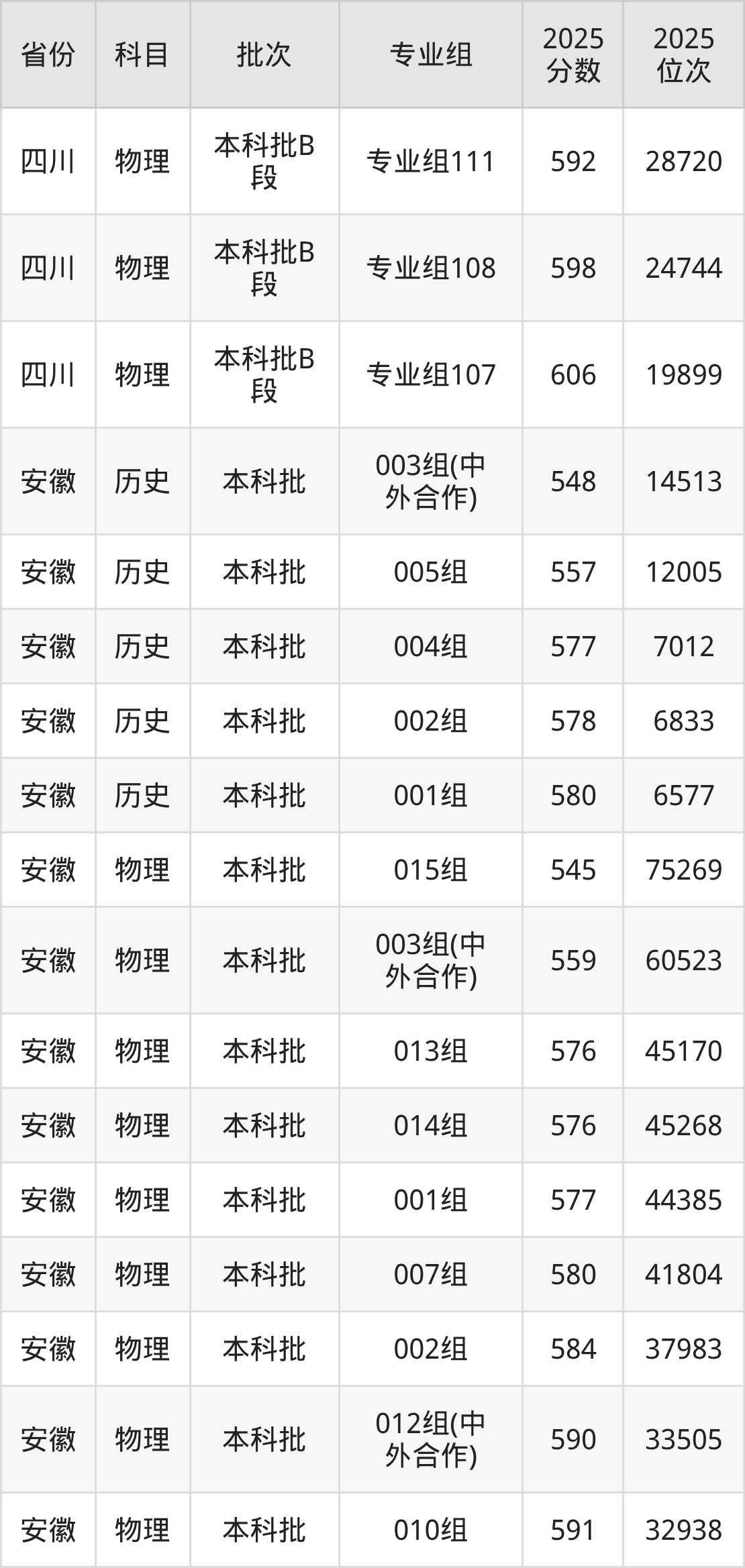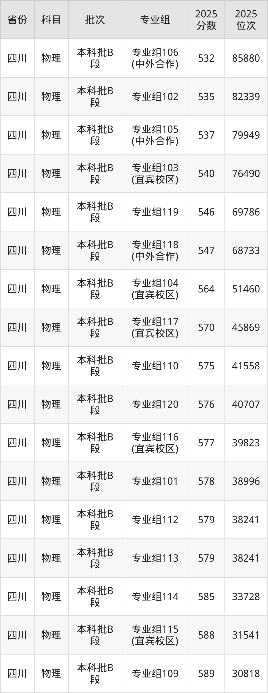 2025年在本科物理类进行招生,各专业组分数线详情如下: