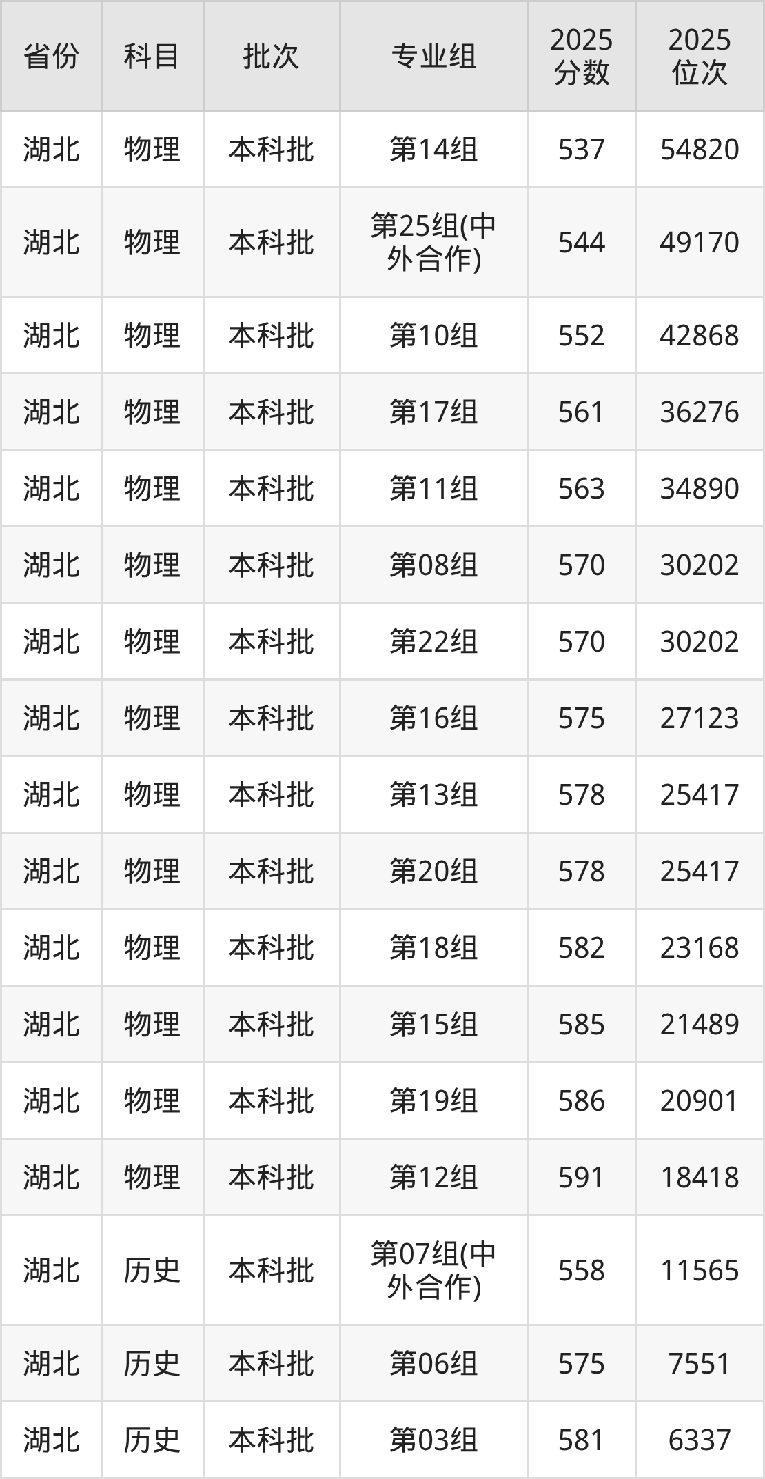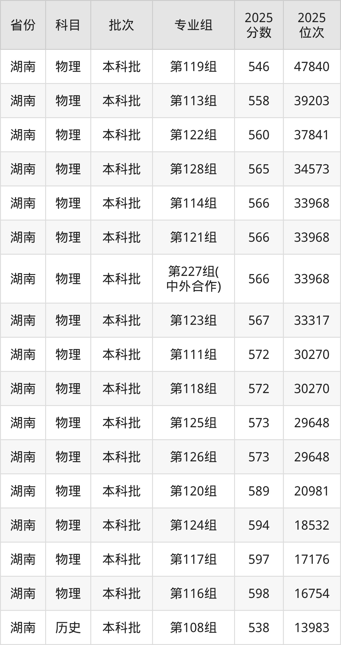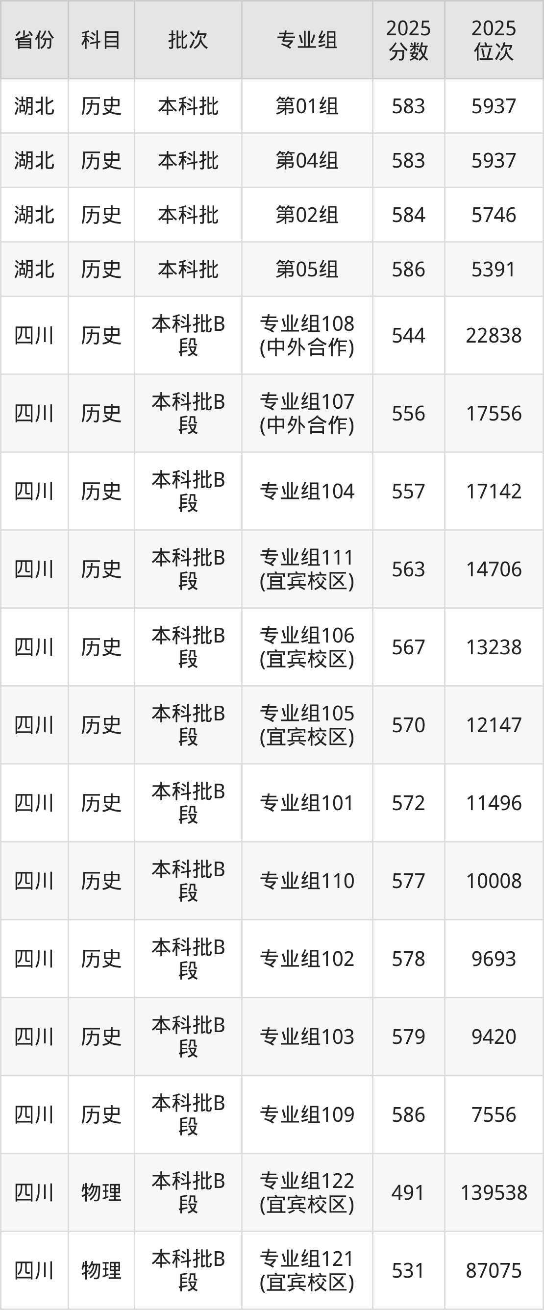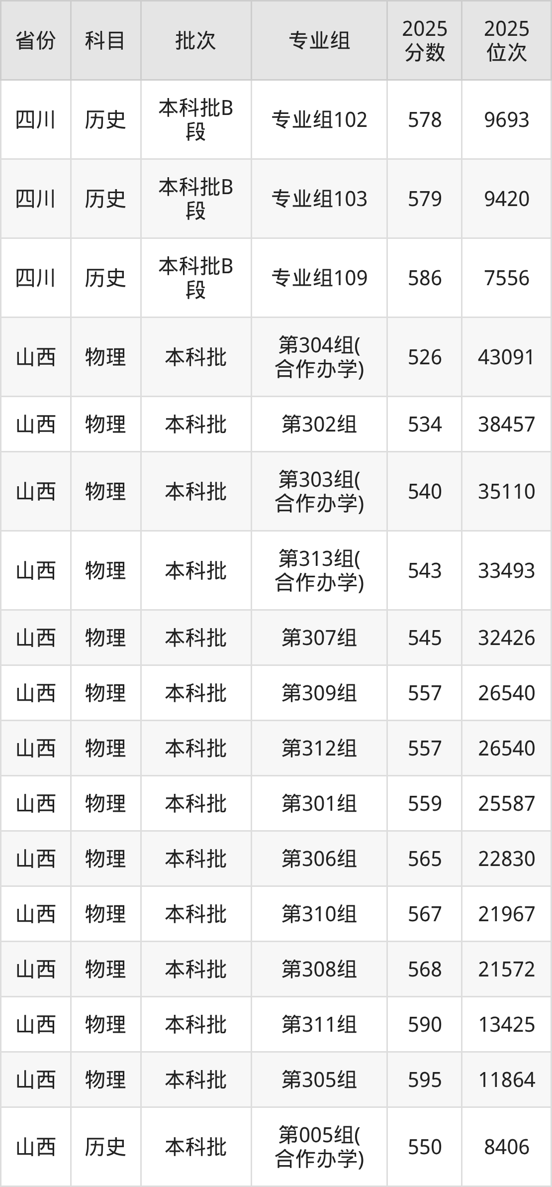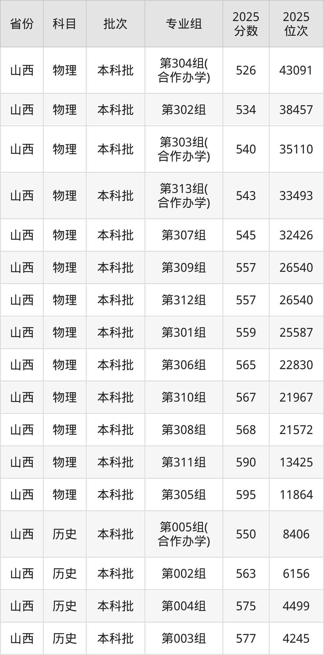 2025年在本科物理类进行招生,各专业组分数线详情如下: