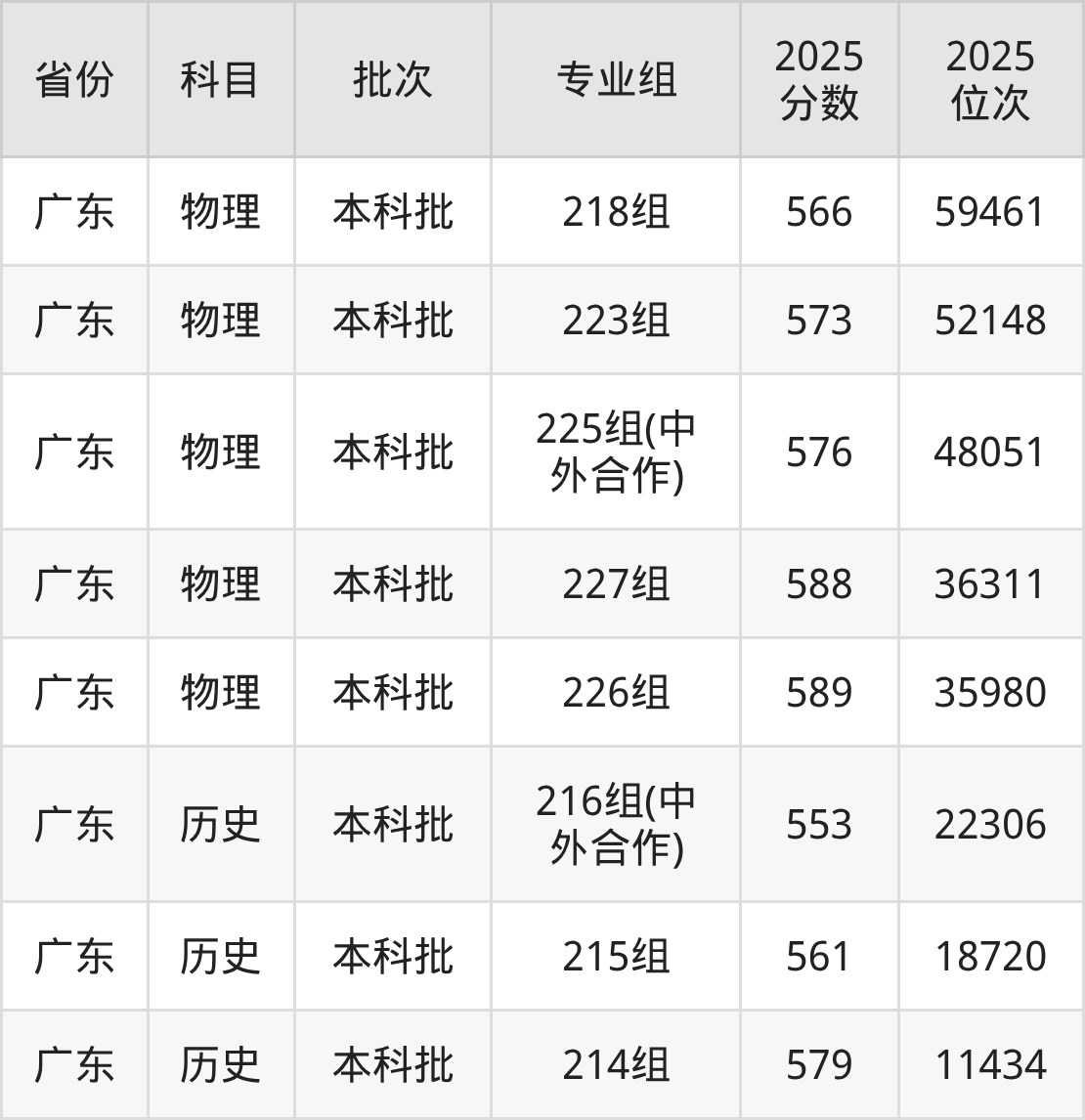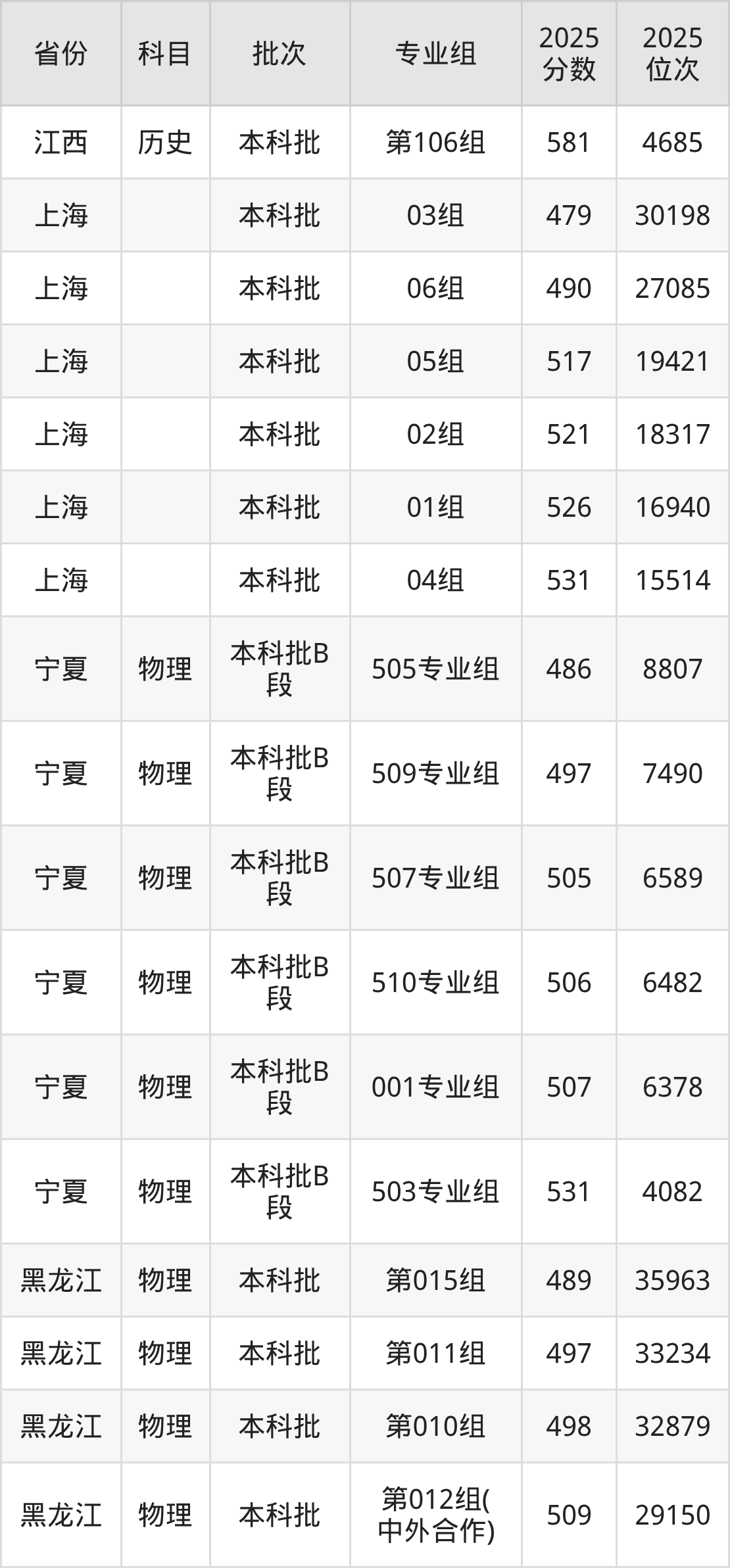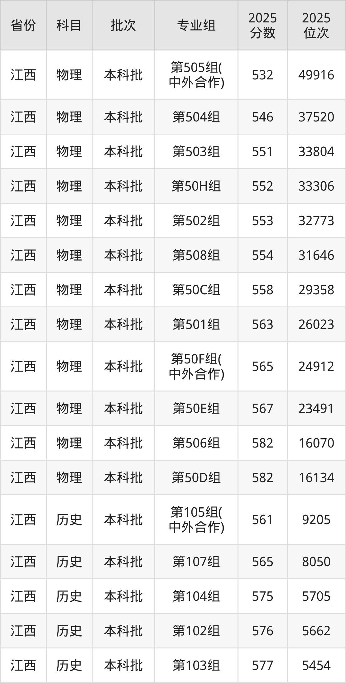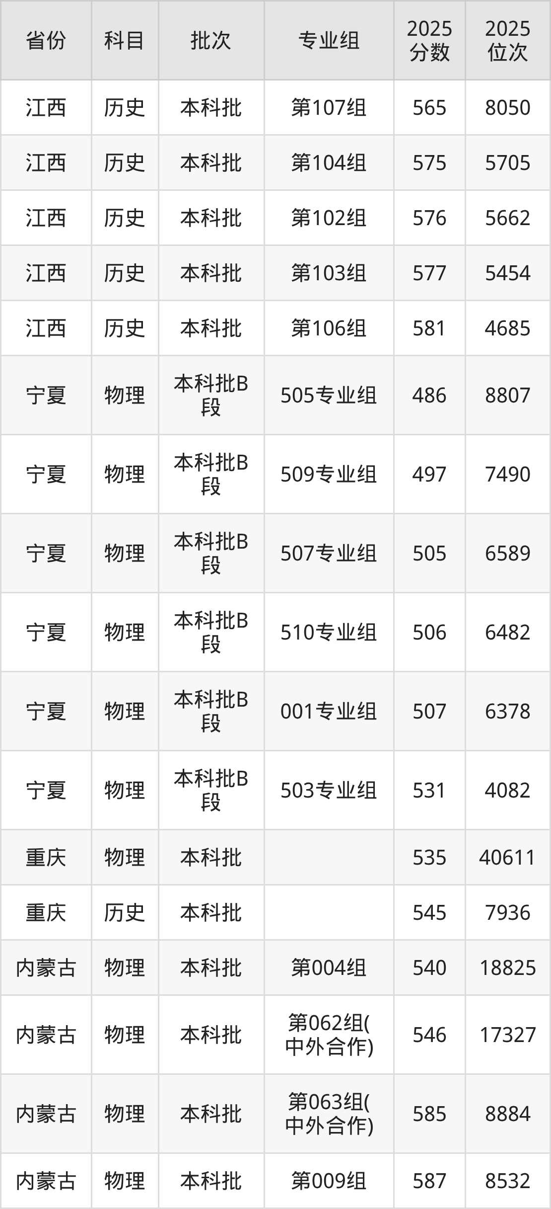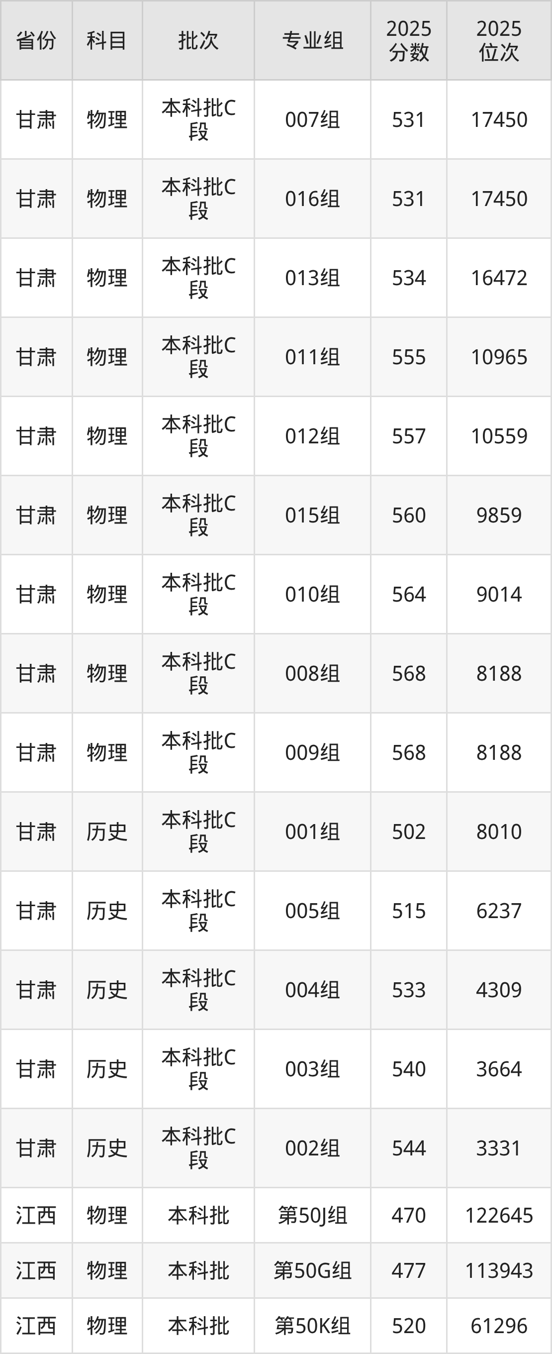 2025年在本科物理类进行招生,各专业组分数线详情如下: