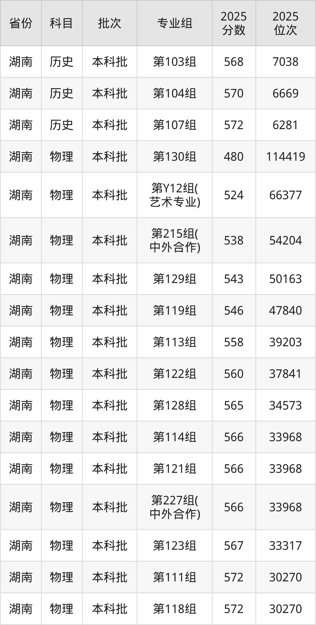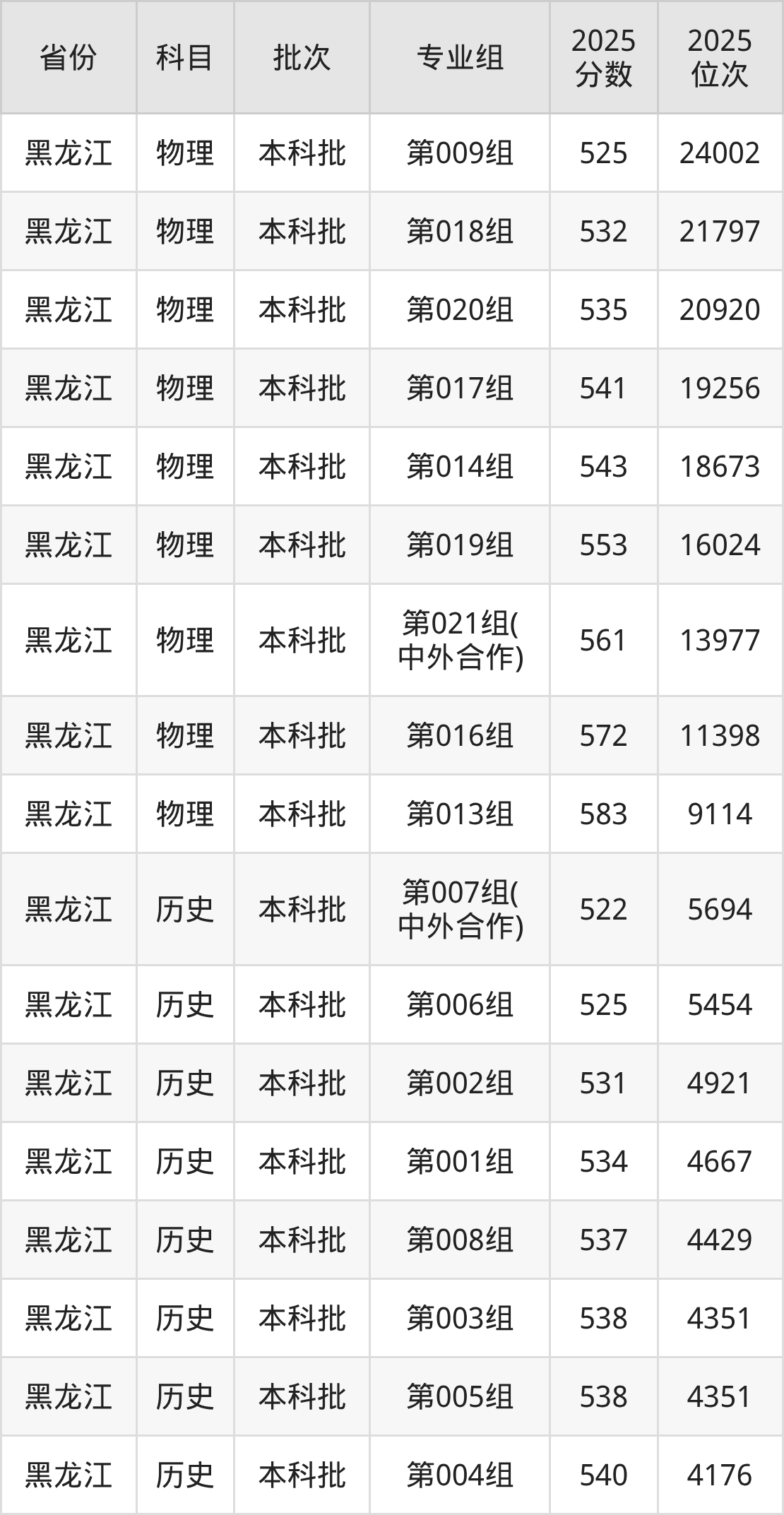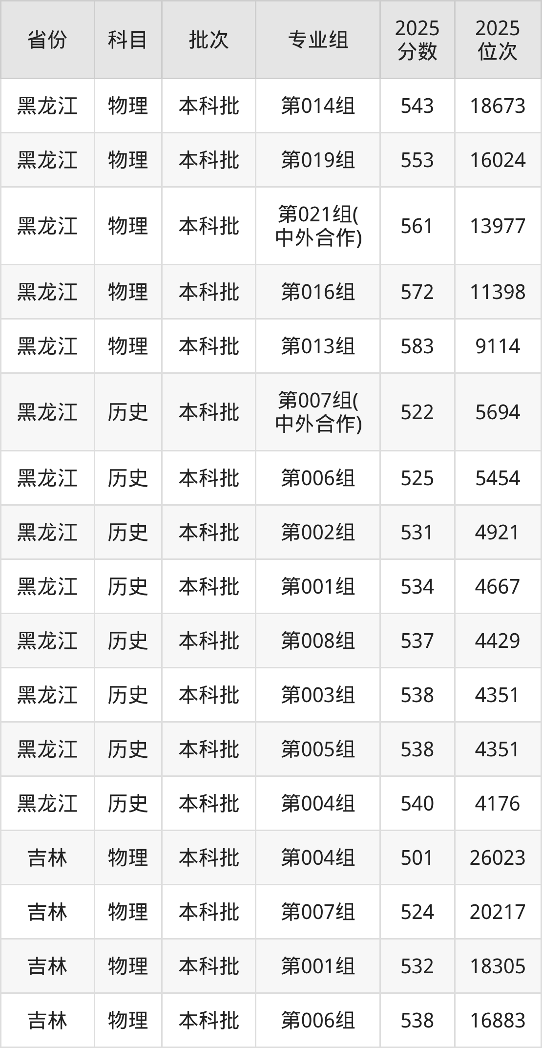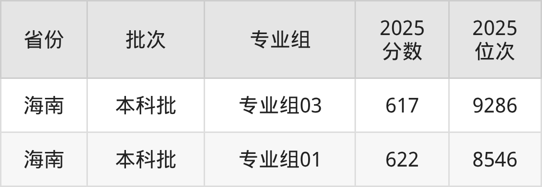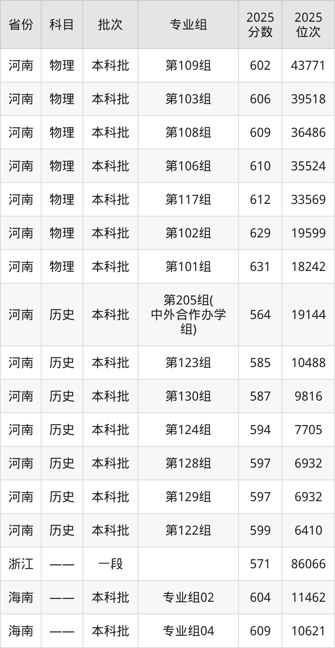 2025年在本科理科进行招生,各专业组分数线详情如下:
