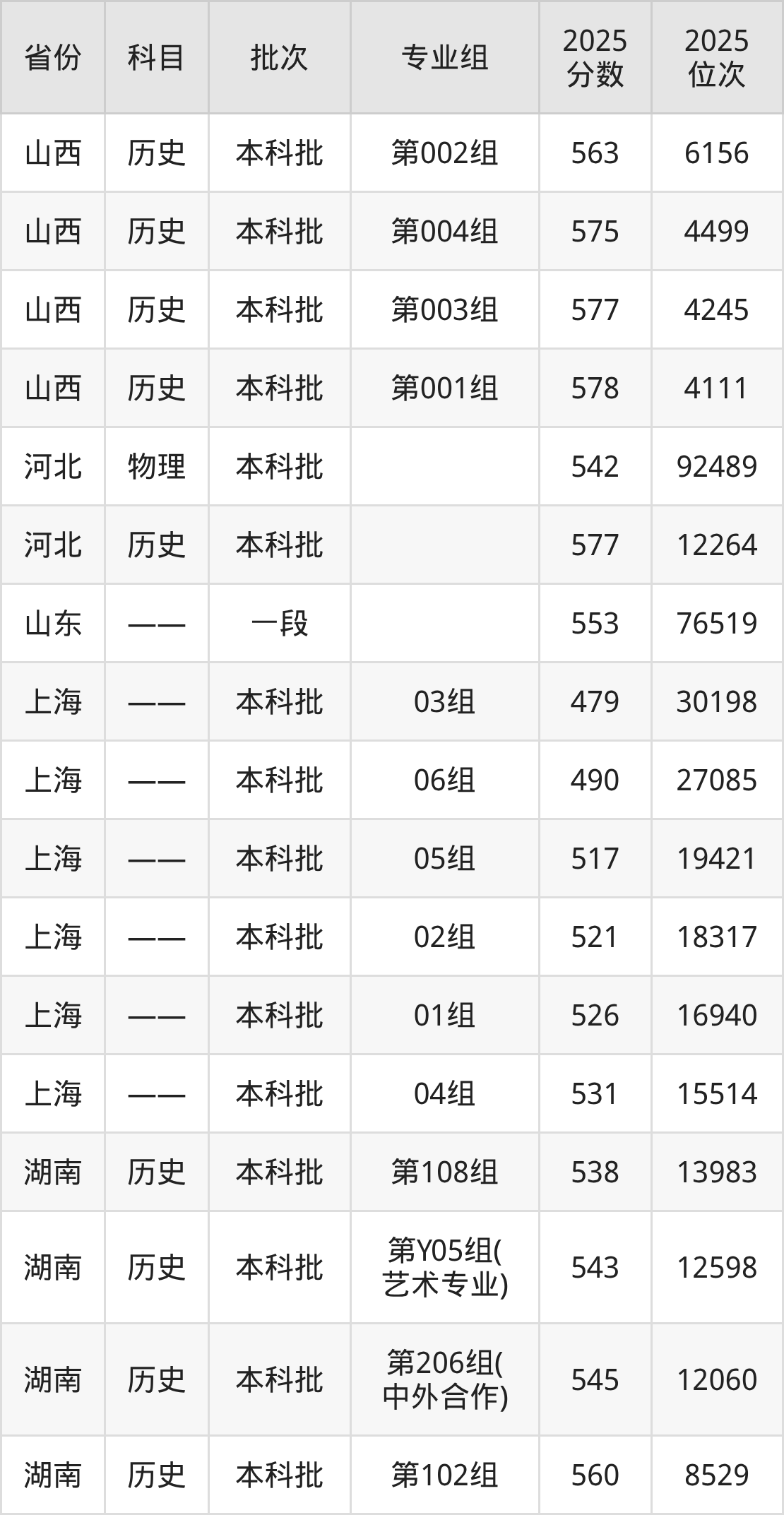 2025年投档录取最低分为577分,录取最低位次为12264名。