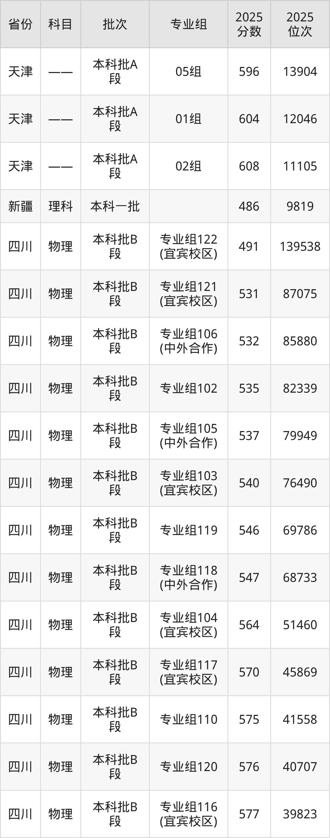 成都理工大学专业组103(宜宾校区):2025年投档录取最低分为540分,录取最低位次为76490名。