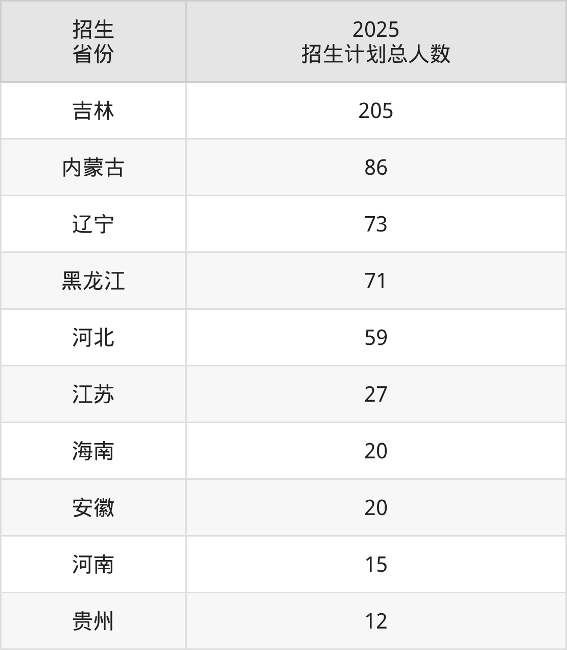 2025年吉林动画学院面向全国10个省市开展本科招生;招生专业共14个,招生人数共588人。2025年在吉林省招生计划总人数是205人,其中,吉林动画学院在吉林省招生人数最多的是数字媒体技术。吉林动画学院在各省具体招生人数情况如下表。
