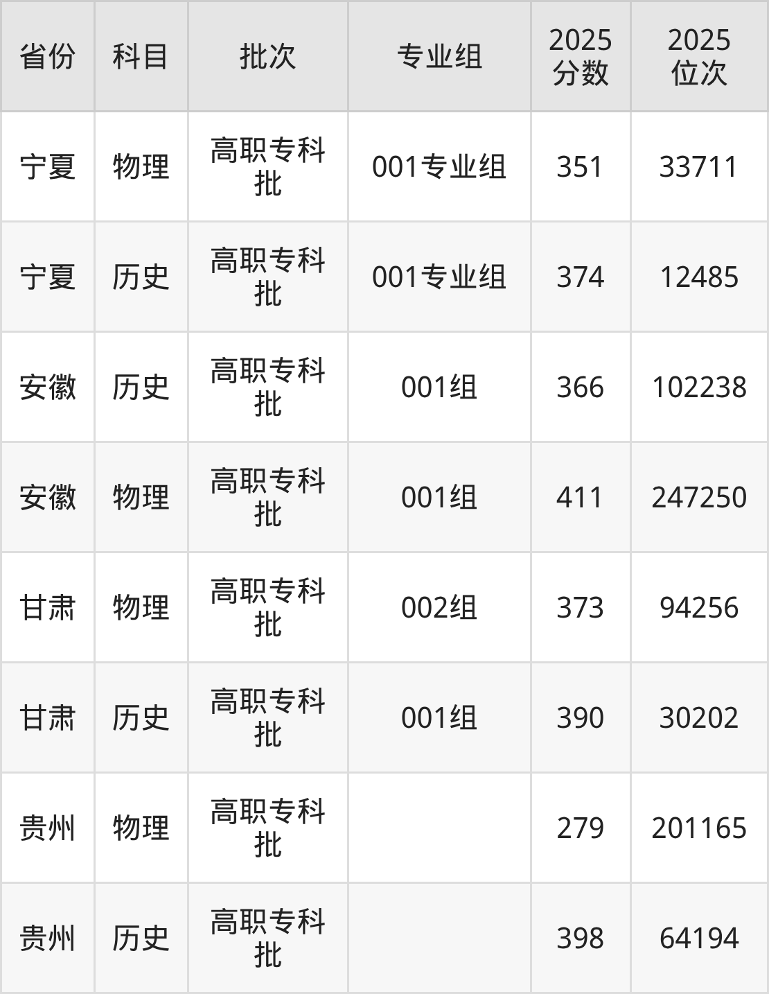 普通类专科历史类最低366分,专科物理类最低411分