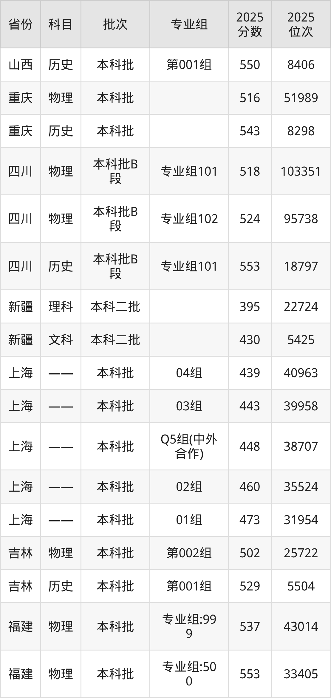 上海商学院002组(中外合作办学):2025年投档录取最低分为542分,录取最低位次为16303名。