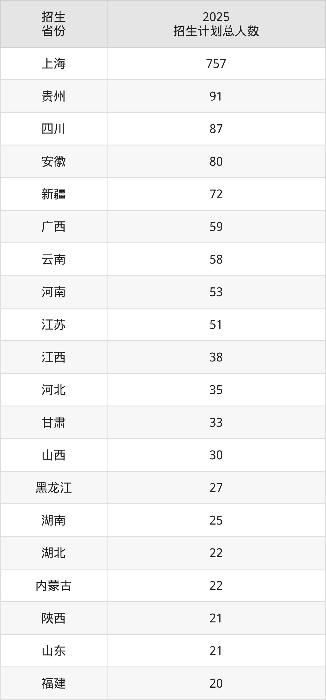 2025年上海商学院面向全国29个省市开展本科招生;招生专业共27个,招生人数共1704人。2025年在上海市招生计划总人数是757人,其中,上海商学院在上海市招生人数最多的是计算机科学与技术。上海商学院在各省具体招生人数情况如下表。