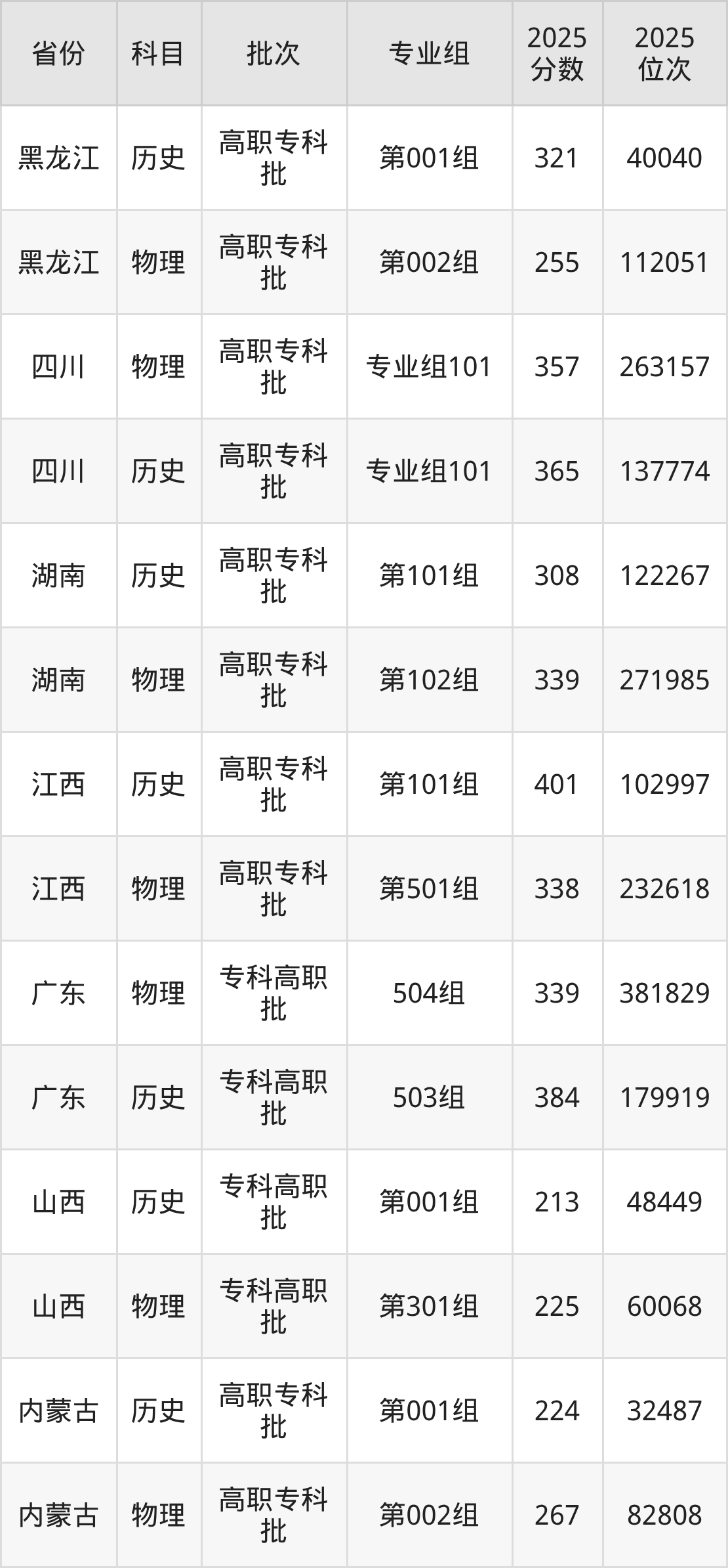 下面是2025年宿迁职业技术学院全国录取分数线一览表,请查阅。