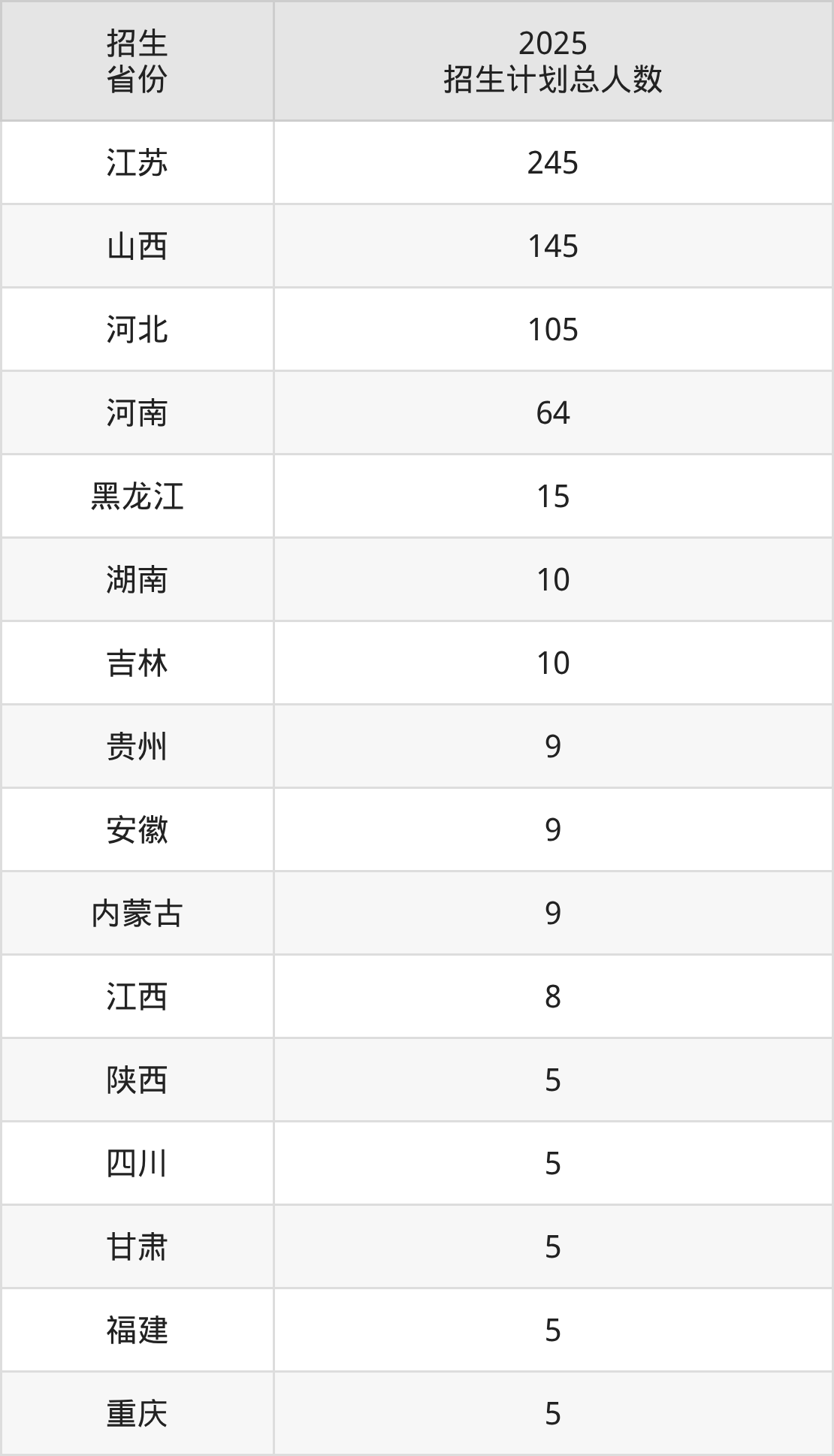 2025年宿迁职业技术学院面向全国18个省市开展专科招生;招生专业共18个,招生人数共664人。2025年在江苏省招生计划总人数是245人,其中,宿迁职业技术学院在江苏省招生人数最多的是人工智能技术应用。宿迁职业技术学院在各省具体招生人数情况如下表。