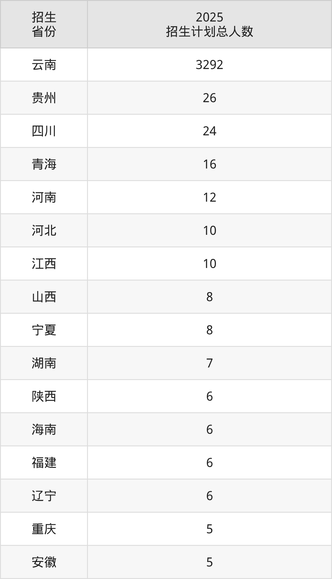 2025年云南国土资源职业学院面向全国22个省市开展专科招生;招生专业共43个,招生人数共3467人。